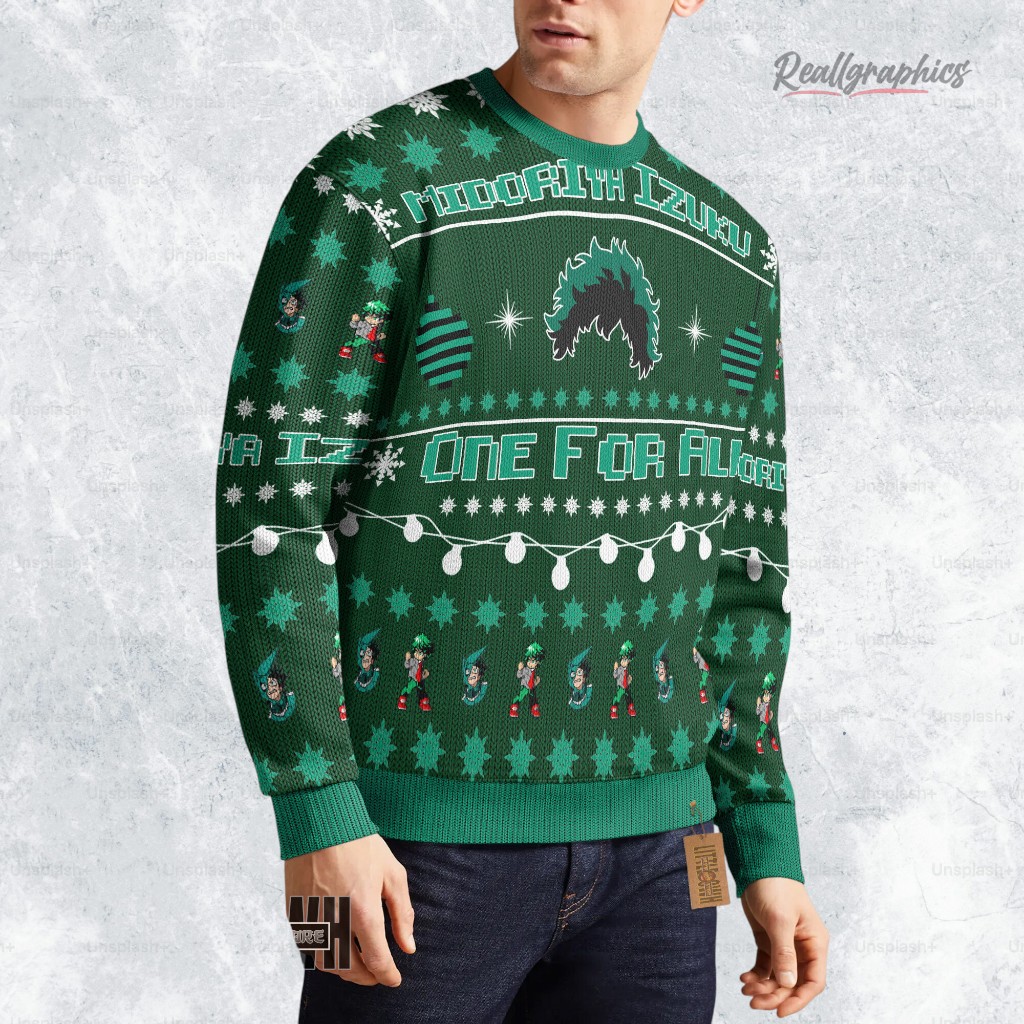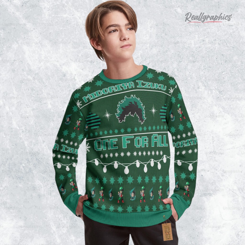 Show your love for Deku this holiday season! This custom My Hero Academia sweatshirt is perfect for any fan. Get yours today and spread some heroic cheer! Available in various sizes.