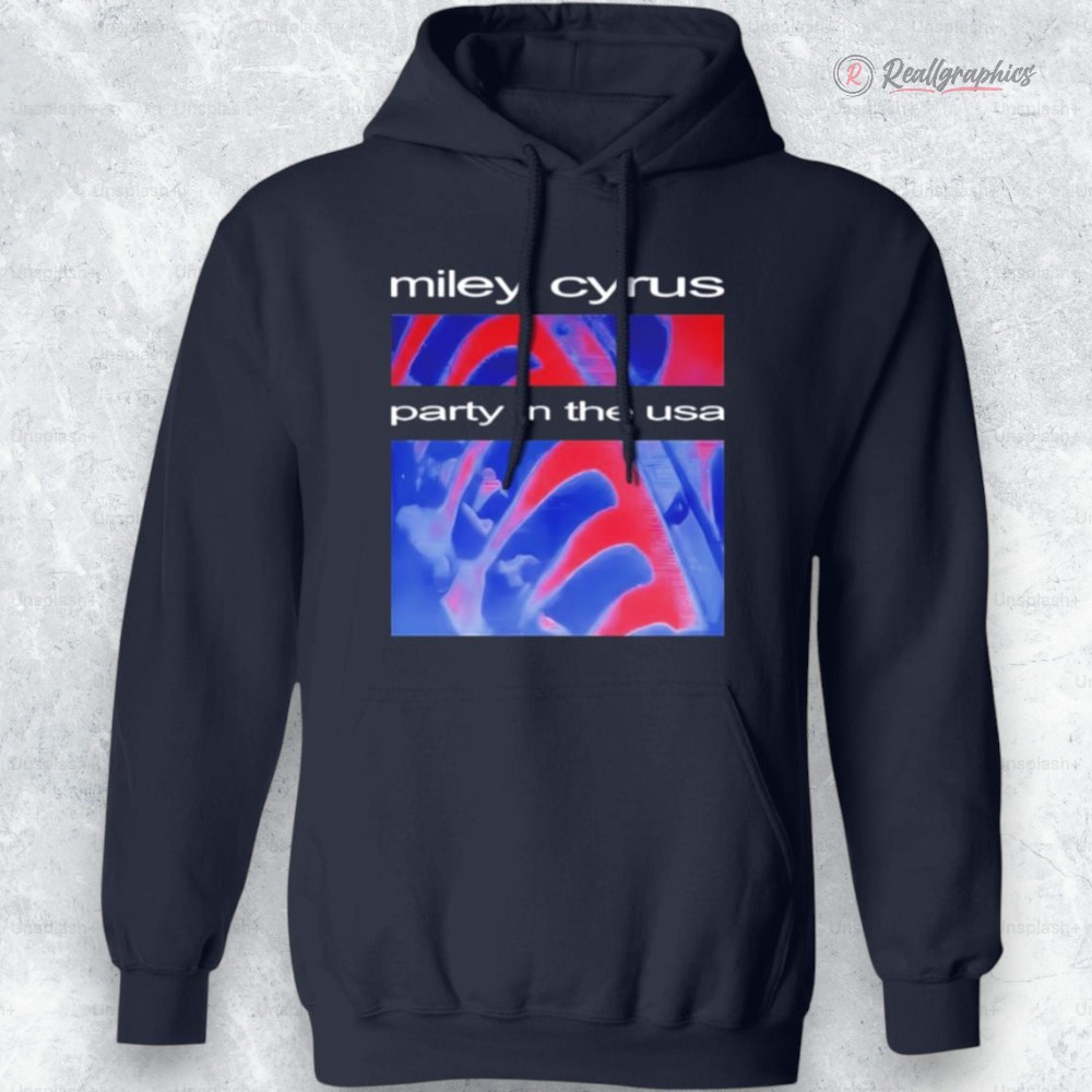 There’s something about proudly wearing a nod to the songs that defined an era—those anthems that blend nostalgia with pure energy. This hoodie carries that feeling effortlessly, its design striking a bold, retro-inspired tone. Abstract blocks of red and blue serve as a dynamic backdrop, while stylized waves and hand shapes add movement and intensity without overwhelming the eye. The clean, lightweight sans-serif typography plays across the front in crisp white, spelling out “miley cyrus” and “party in the usa” with a subtle dose of attitude. It’s a thoughtful choice for fans who grew up with Miley’s hits or anyone who appreciates the fusion of music culture and graphic style. Guitar enthusiasts, followers of early 2000s pop, and those who enjoy making a low-key statement through their wardrobe will find the appeal hard to ignore. The design’s energetic but relaxed vibe fits naturally into casual settings—whether it’s a concert, a laid-back party, or a fan meetup, it offers something more than just warmth. Given its spirited yet understated look, this Miley Cyrus party in the usa hoodie also makes an easy gift for the music lovers in your life, particularly teens and young adults who resonate with those iconic cultural moments. It speaks to identity without shouting, a perfect balance when celebrating a shared soundtrack that still feels fresh.