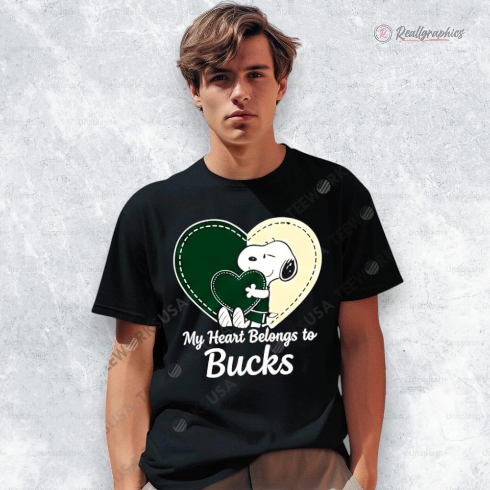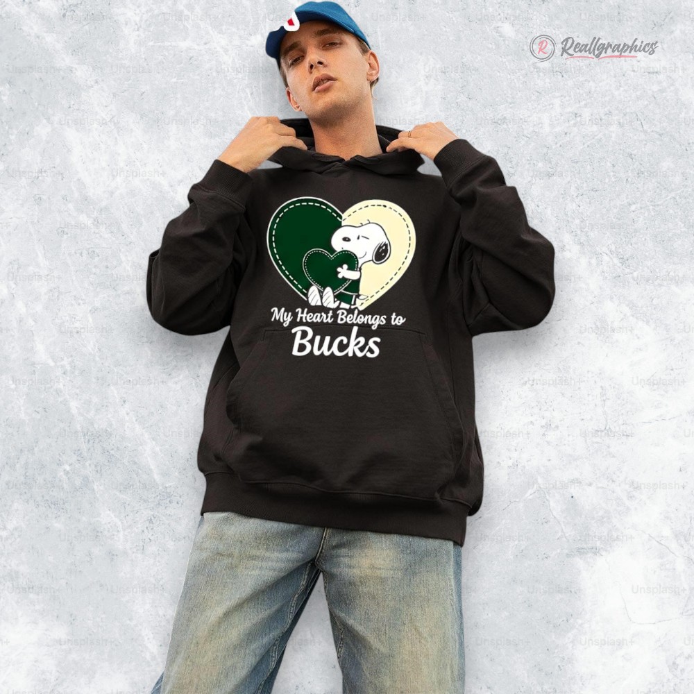 Featuring Snoopy hugging a heart in Bucks colors with the message “My Heart Belongs to Bucks”, this design is the perfect mix of cute, sporty, and meaningful.