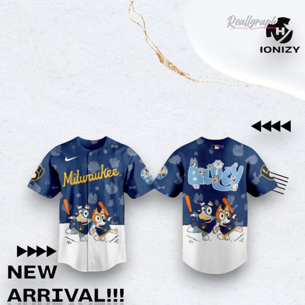 Batter up! ⚾️ This Bluey-inspired Brewers jersey is a home run! Perfect for showing off your love for baseball and your favorite cartoon pups. Get yours today and let's go Crew! 💙💛