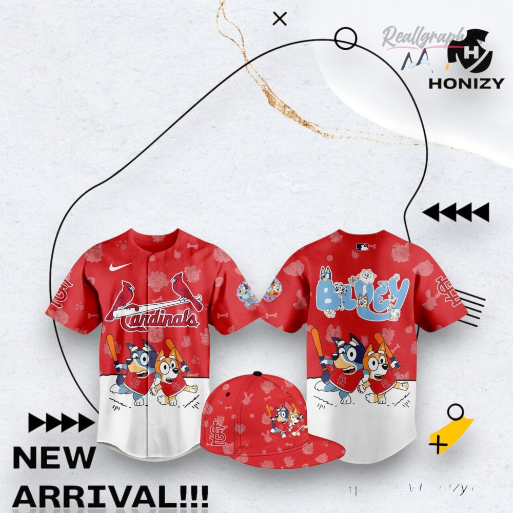 Batter up! ⚾️ Combining Cardinals spirit with Bluey's playful charm. This baseball jersey shirt is a grand slam of fun! Perfect for game days or showing off your love for both. Get yours now and let's play ball!