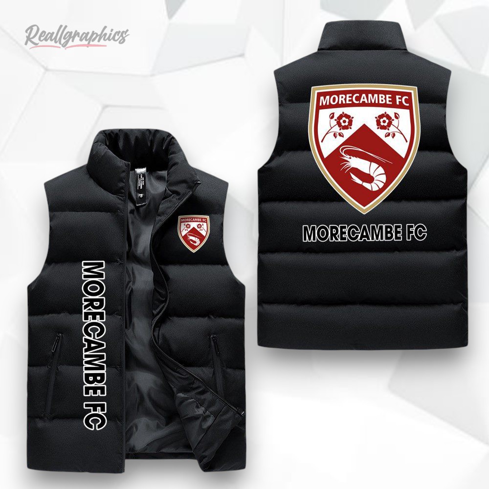 Wear your passion proudly with this stylish sleeveless puffer jacket. The bold Morecambe F.C. crest shines brightly, a testament to loyalty and spirit. Each detail of the emblem tells a story of rich heritage and thrilling matches. It's not just a jacket; it’s a statement of true fandom. Ready to make it yours?