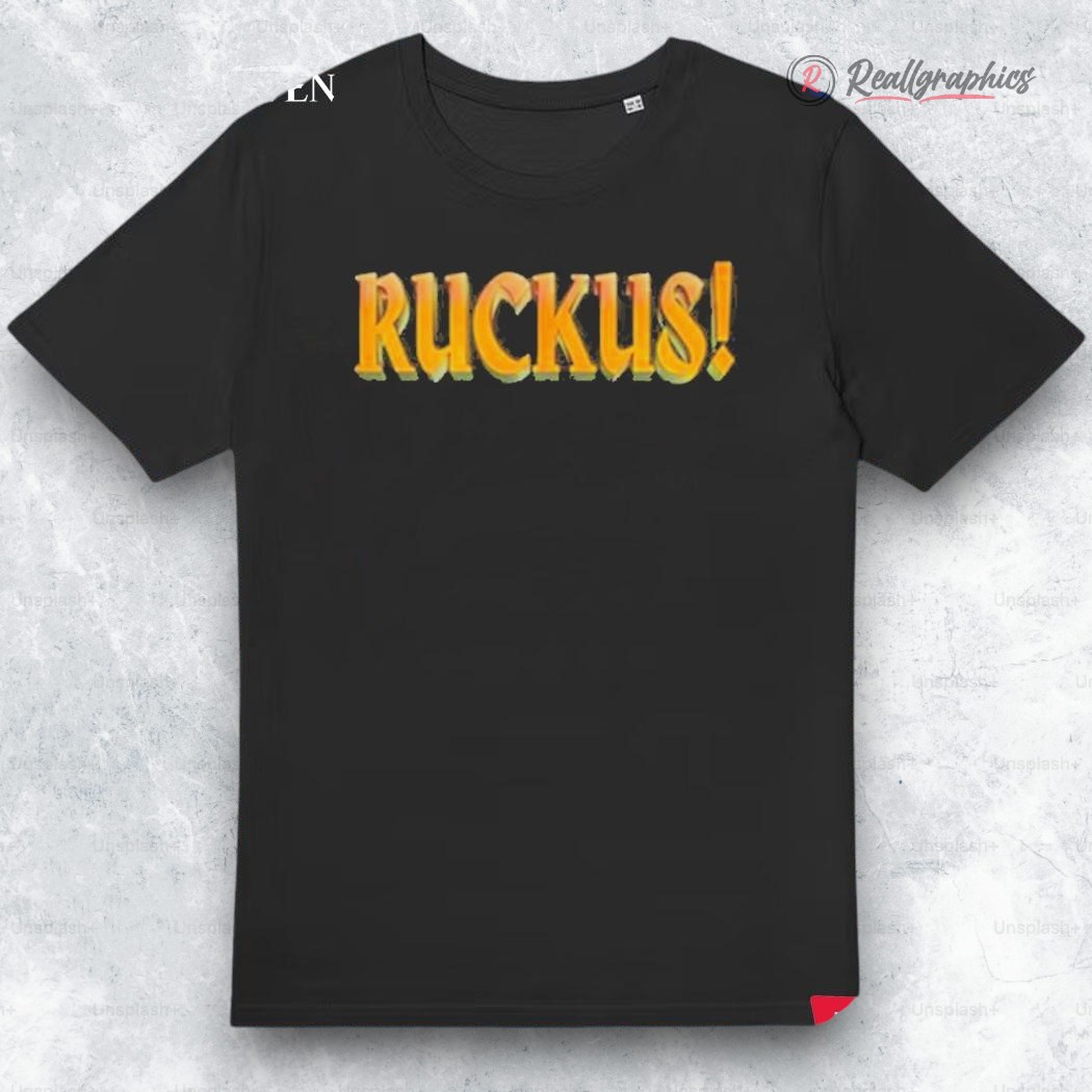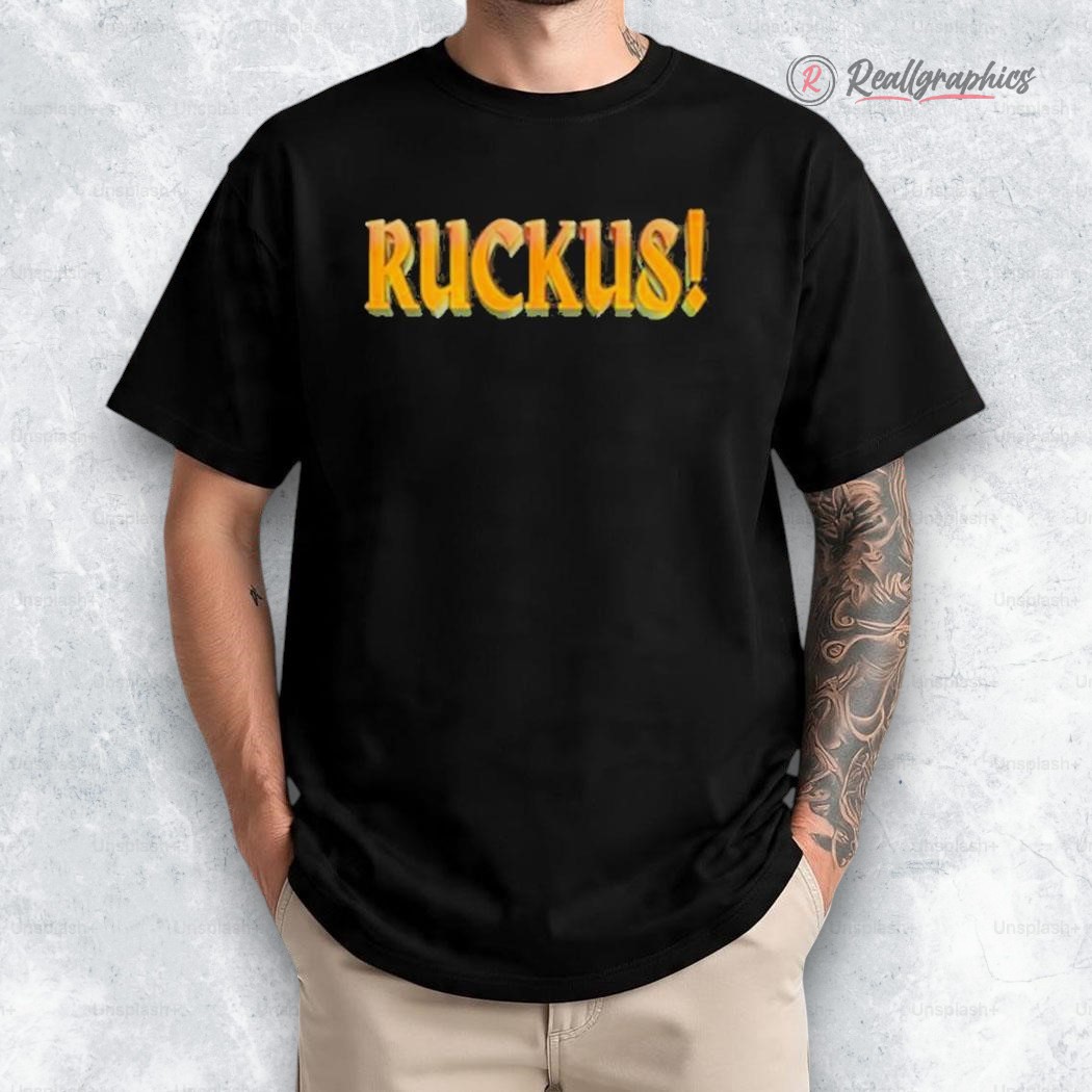 Snag the iconic tee that screams raw energy! Bold design, comfortable fit – perfect for rocking out at the show or chilling with friends. Get yours now and show the world you're part of the Ruckus. Limited stock available!