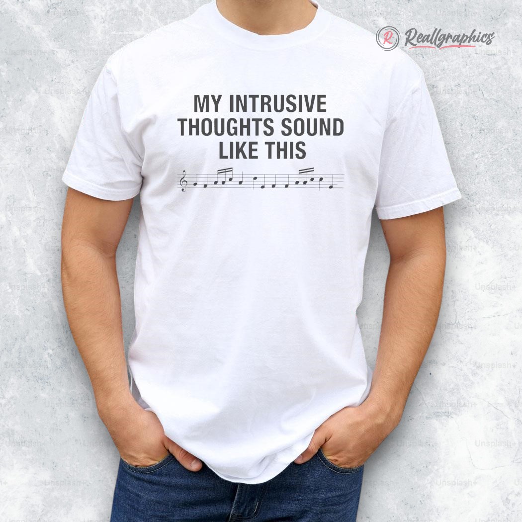 Finally, a shirt that understands me. It's witty, a little chaotic, and perfectly captures the absurdity of my brain. Wearing it is basically an act of self-acceptance (and maybe a conversation starter!). My Intrusive Thoughts Sound Like This Shirt