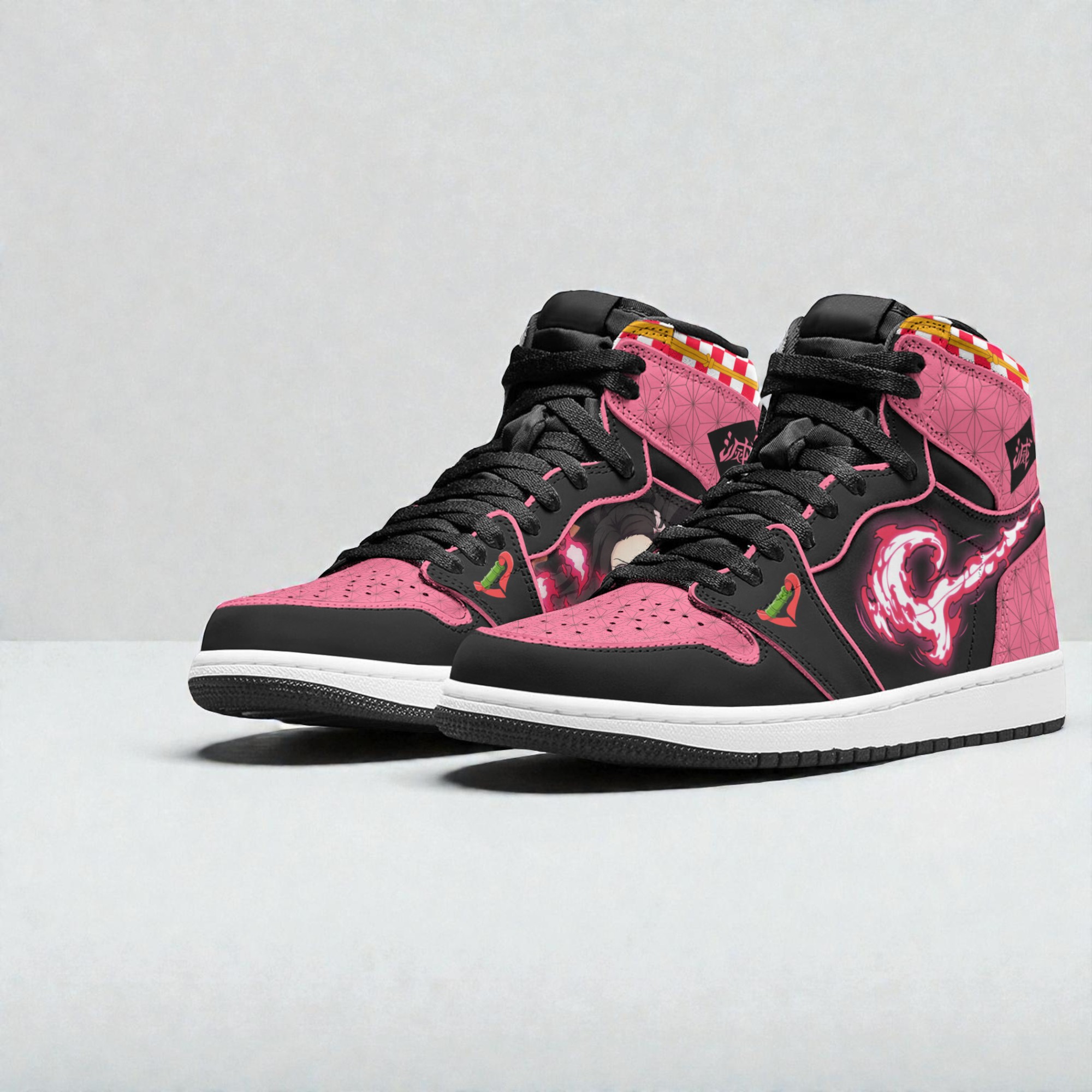 Bold pink panels catch the eye immediately, set against sharp black overlays that give these kicks an unmistakable edge. The white midsole offers a crisp contrast, making the intricate flaming dragon design pop with fiery intensity. Subtle kanji characters weave through the shoe’s surface, blending traditional art with streetwise swagger. Small icon accents add playful details without overwhelming the overall look. For anyone drawn to the world of Kimetsu no Yaiba, these Nezuko Sneakers Custom Kimetsu no Yaiba Anime Boot Sneakers New Version are more than footwear—they’re a statement. The design channels the fierce spirit and determination of Nezuko herself, embodying the balance of strength and grace that fans admire. This is a pair of sneakers that resonates with someone who embraces bold aesthetics and storytelling in their style. Sneaker collectors who also count themselves anime enthusiasts will appreciate the graphic nature of this collaboration. It’s not just about wearing a show—it’s about carrying a piece of that universe with you, whether you’re navigating the city streets or heading to a convention. These sneakers offer a vibrant, playful punch ideal for casual days or gifting to those who thrive on culture and character.
