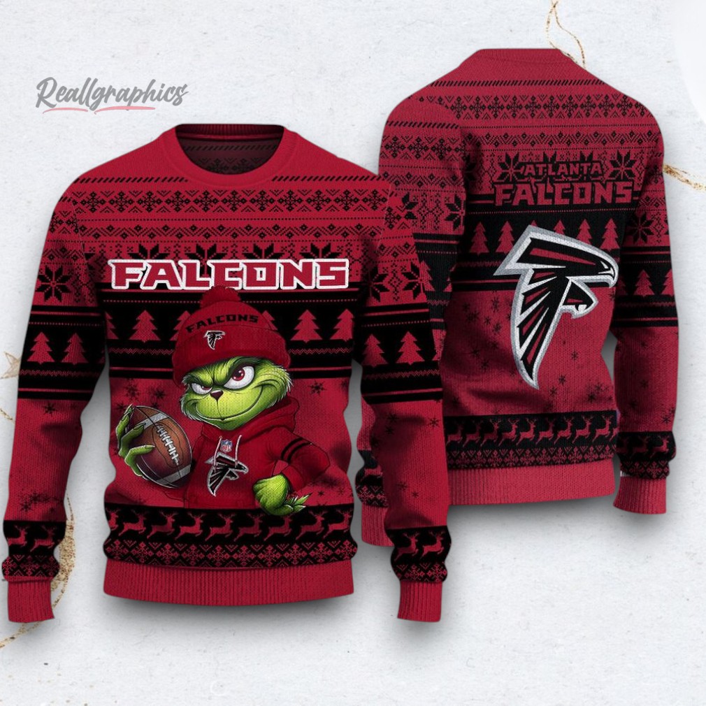 Ever pictured the Grinch rooting for your team? This sweater brings that whimsical vision to life, blending the iconic Grinch's mischief with the bold spirit of the Falcons. It's a playful twist that sparks conversations at every holiday gathering. Want to add some festive fun to your game day? Grab yours today and join the holiday cheer!