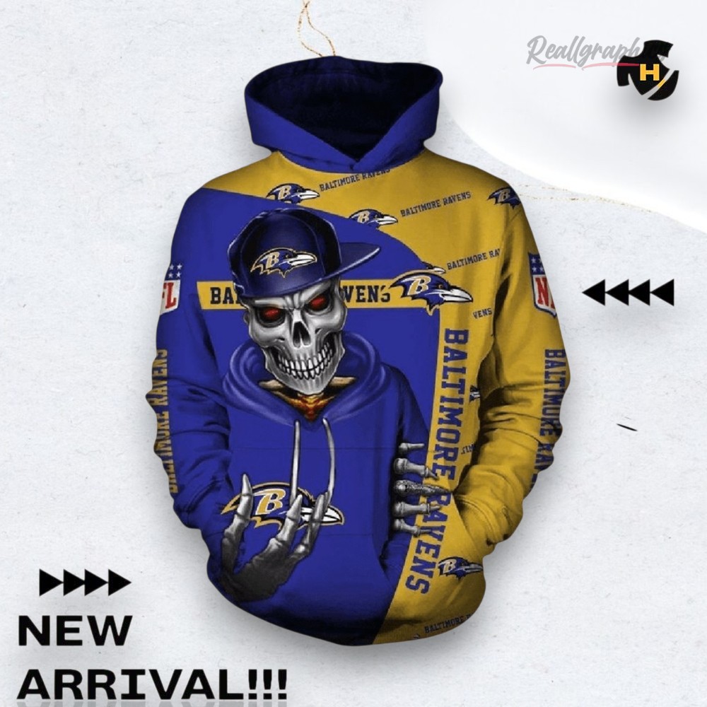Nfl Baltimore Ravens X Skull Of Death Halloween 3D All Over Hoodie details