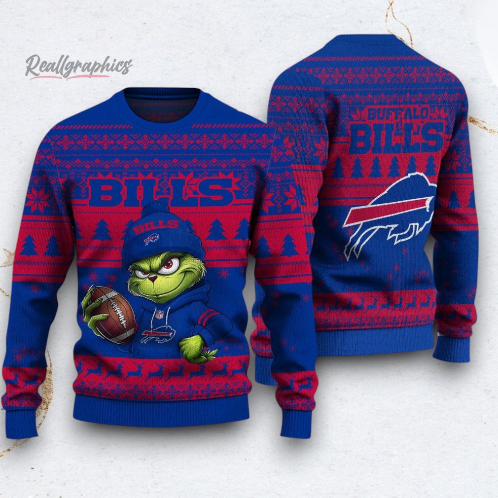 When the season's cheer clashes with a love for football, magic happens! This sweater brings the Grinch into the holiday huddle with the Buffalo Bills, creating a playful yet iconic design. Imagine the fun stories this eye-catching combo will spark at your festive gatherings. Ready to add some mischief to your holiday wardrobe? Grab yours and let the laughter roll!