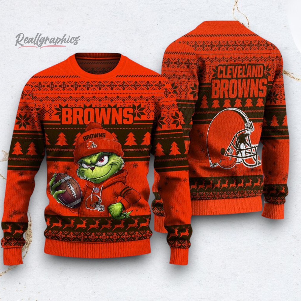 Show your team spirit this holiday season with this festive and fun sweater! Perfect for Browns fans who love a touch of Grinchy mischief. Stay warm, cozy, and ready to cheer on your favorite team in style. Get yours now and spread some holiday cheer!