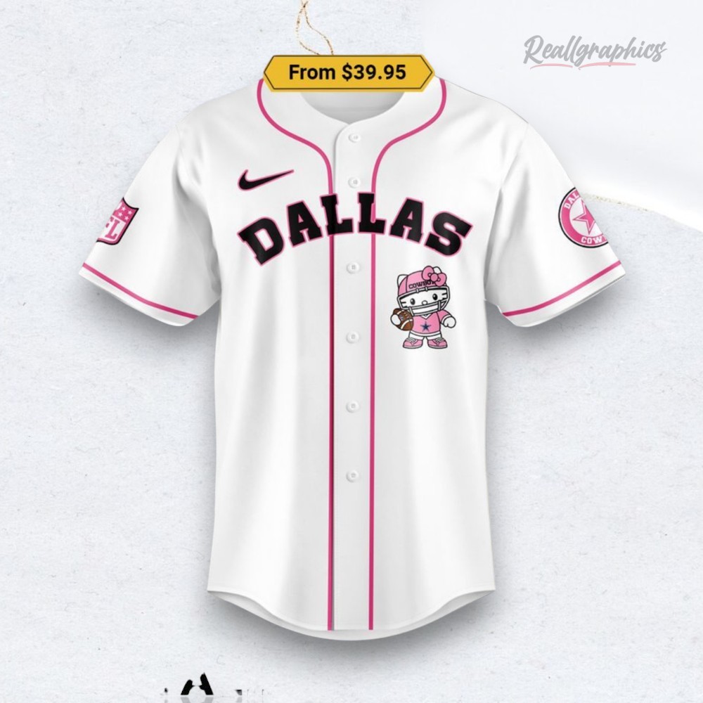 Touchdown fashion! Score major style points with this adorable Hello Kitty baseball jersey featuring America's Team. Perfect for game days or adding a playful twist to your everyday look. Get yours and show off your love for the Cowboys and the cutest kitty around!