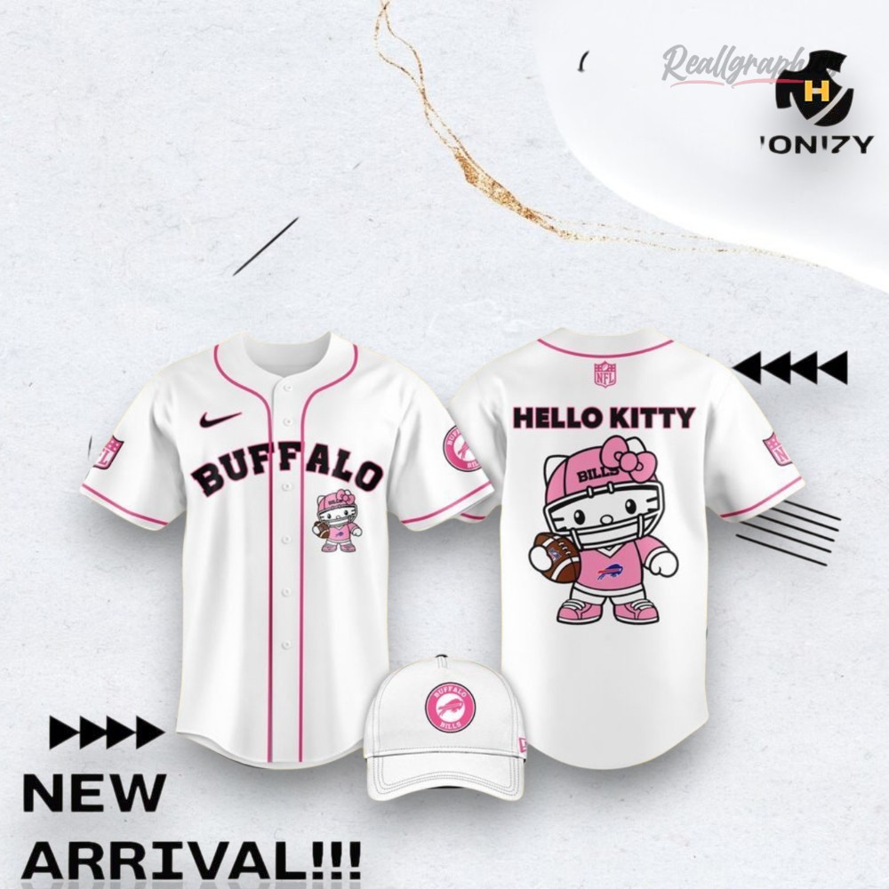 Touchdown fashion! 🏈🎀 Rock this adorable Buffalo Bills Hello Kitty baseball jersey. Show your team spirit with a kawaii twist. Perfect for game day or adding a playful touch to your everyday look. A must-have for Bills fans who love Hello Kitty!