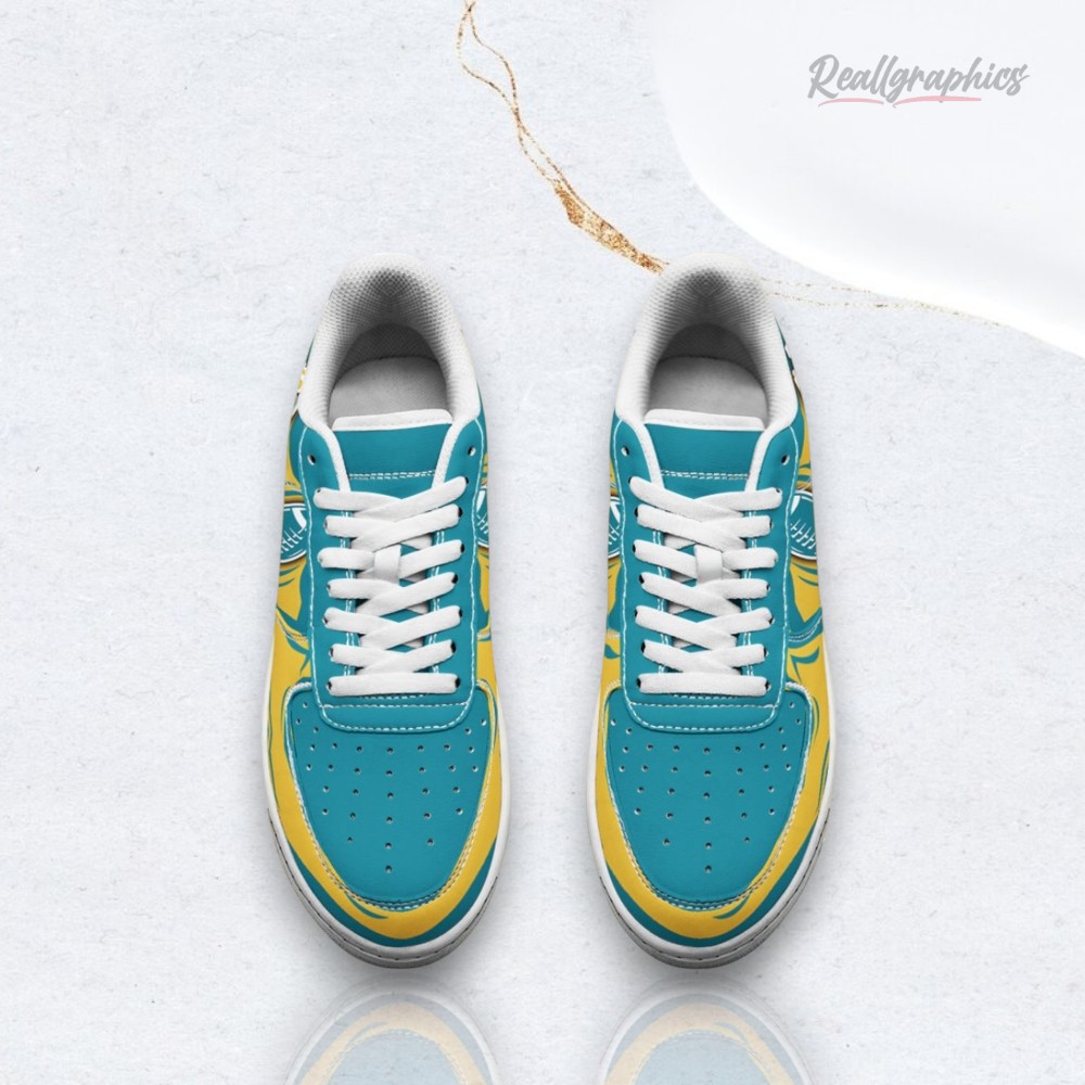 Step into the new season with these fresh Jacksonville Jaguars Air Force shoes! Show your team pride from head to toe. Perfect for game day or everyday wear. Get yours now and represent the Teal & Black in style! Limited quantities available!