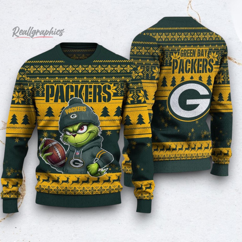 Get ready to sleigh the holidays with ultimate fan style! This festive sweater combines team spirit with a touch of Grinchy charm. Perfect for game days, holiday parties, or cozy nights in. Show off your love for the Packers and holiday cheer at the same time!
