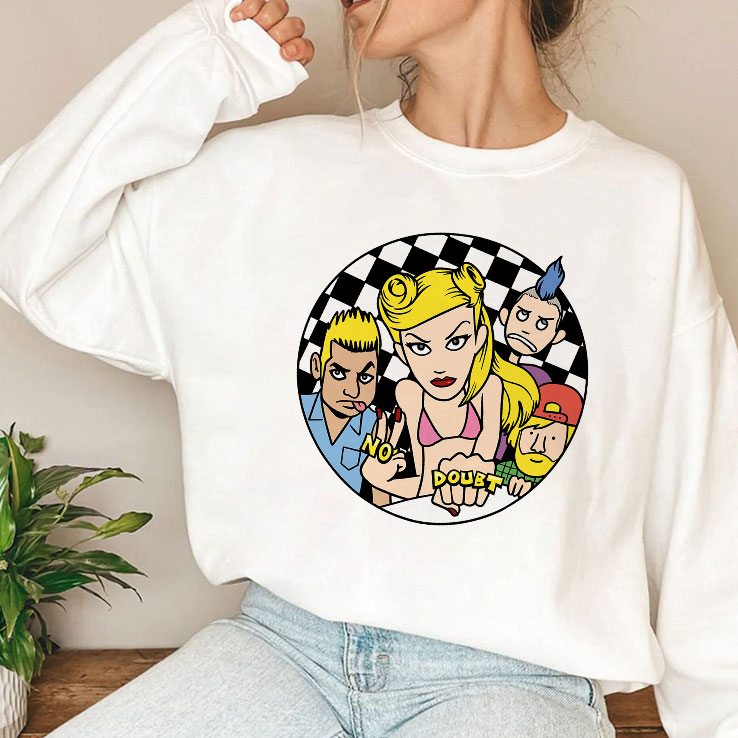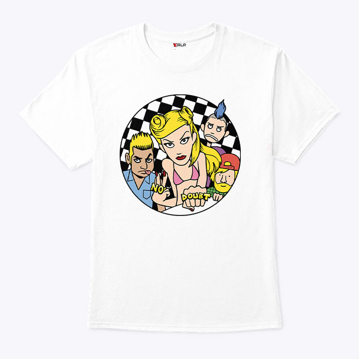 Wearing a tee like this is almost like carrying a snapshot of the 90s rebellion wrapped in a splash of pop art coolness. The graphic centers around a bold circle framing stylized characters, capturing Gwen Stefani’s unmistakable energy with checkerboard patterns that feel straight out of a ska album cover or a punk zine. The colors clash yet complement—sharp blacks and whites play off vibrant pops of red and yellow, giving the whole shirt a dynamic push and pull that grabs your eye without overwhelming it. The typography is unapologetically loud, with cartoonish, outlined letters spelling out the band’s name in a way that nods to comic books and street art alike. It’s got edge, personality, and a playful spirit that fans who know Gwen’s style and No Doubt’s vibe will instantly recognize. This isn’t just about nostalgia—it’s about wearing a piece that speaks to a bold attitude and a musical heritage that’s still vivid today. Anyone who grew up with alternative rock soundtracks or has a soft spot for retro pop culture references would appreciate this. It fits effortlessly into casual days spent at local gigs, weekend outings, or even relaxed hangouts with friends who get the reference. The design feels both like a statement and an easygoing expression of taste—perfect for someone who wants their wardrobe to reflect more than just style but a genuine cultural edge.