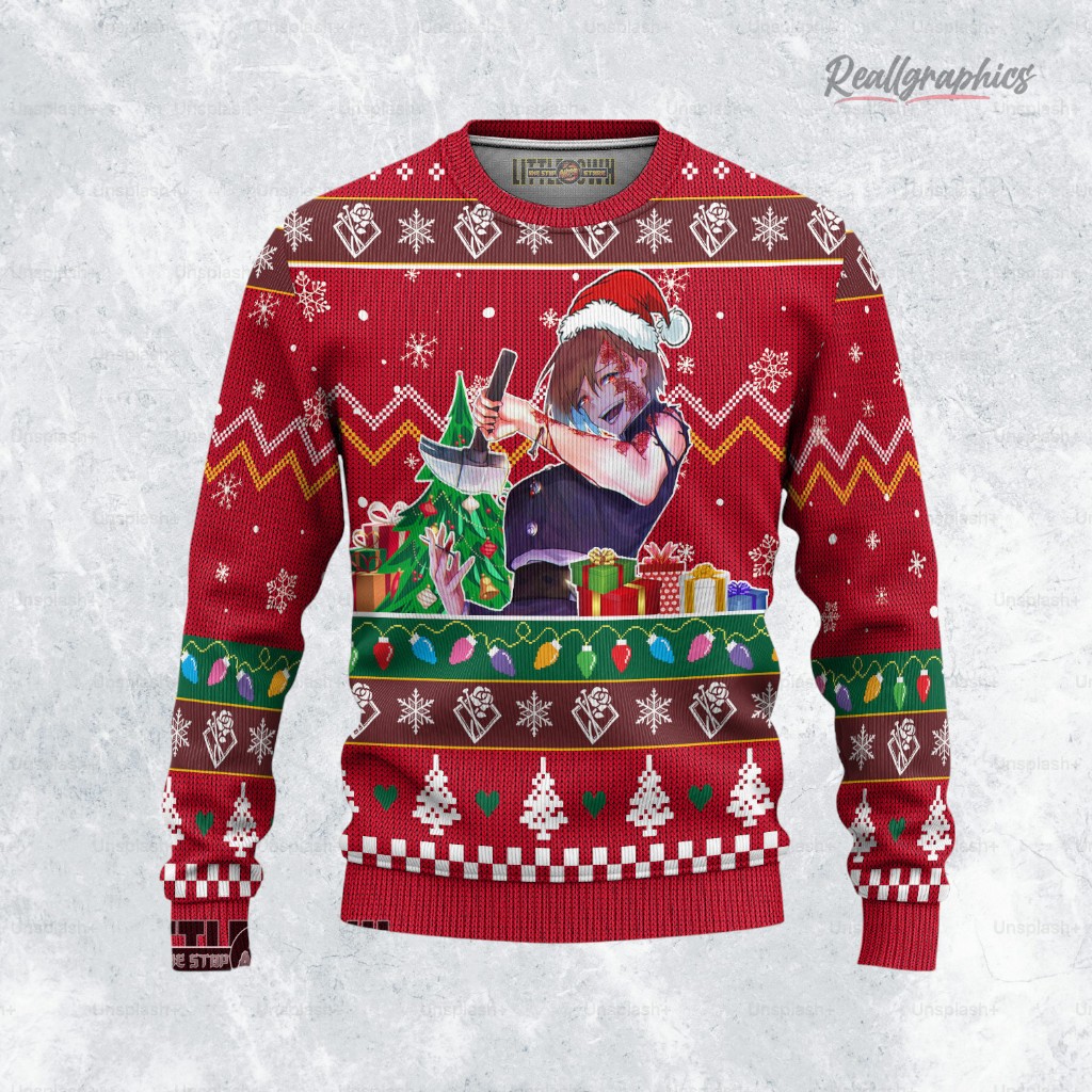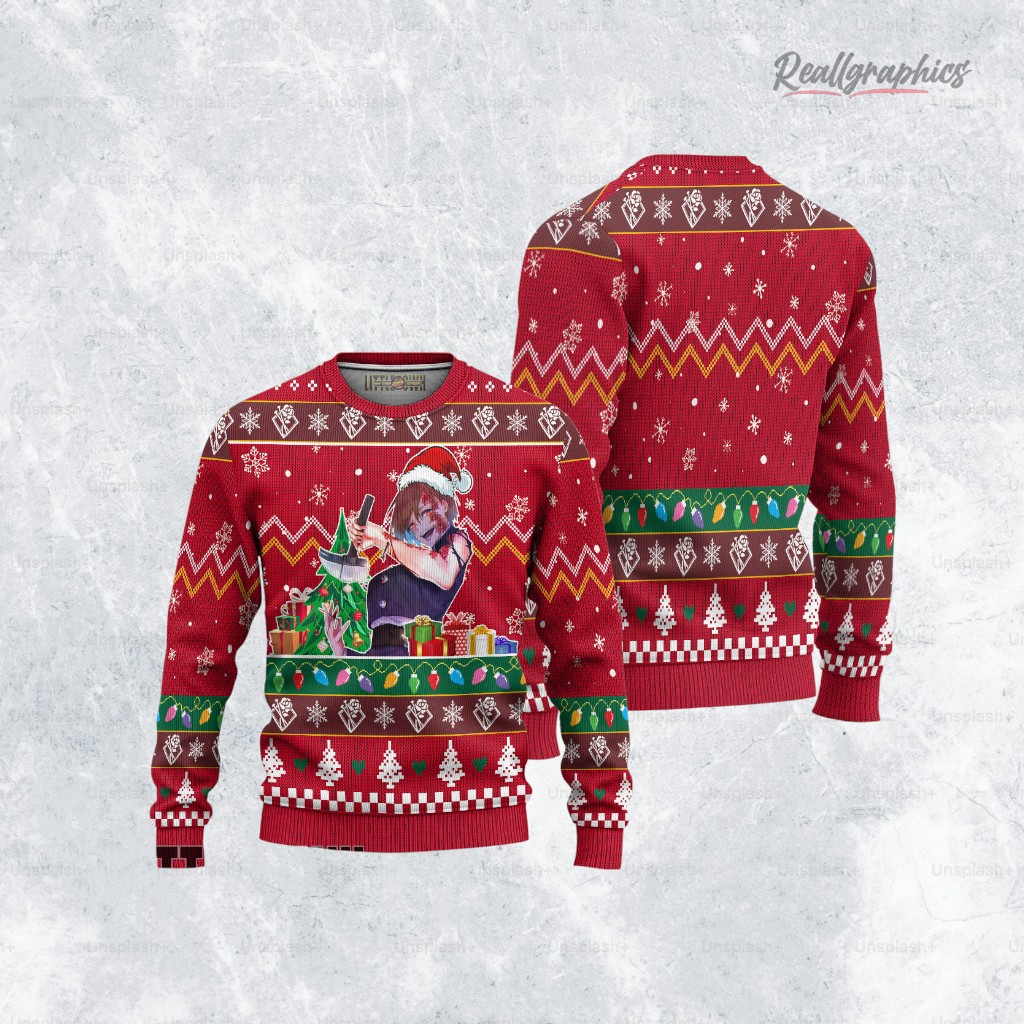 Gear up for the holidays with this unique Jujutsu Kaisen-themed sweater! Featuring vibrant colors and playful designs inspired by your favorite sorcerer, it's the perfect blend of festive and fandom. Stand out at your next holiday party and show off your love for Jujutsu Kaisen in style! Nobara Sweatshirt Custom Jujutsu Kaisen Ugly Sweater