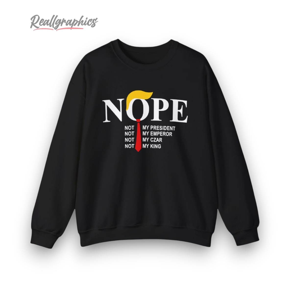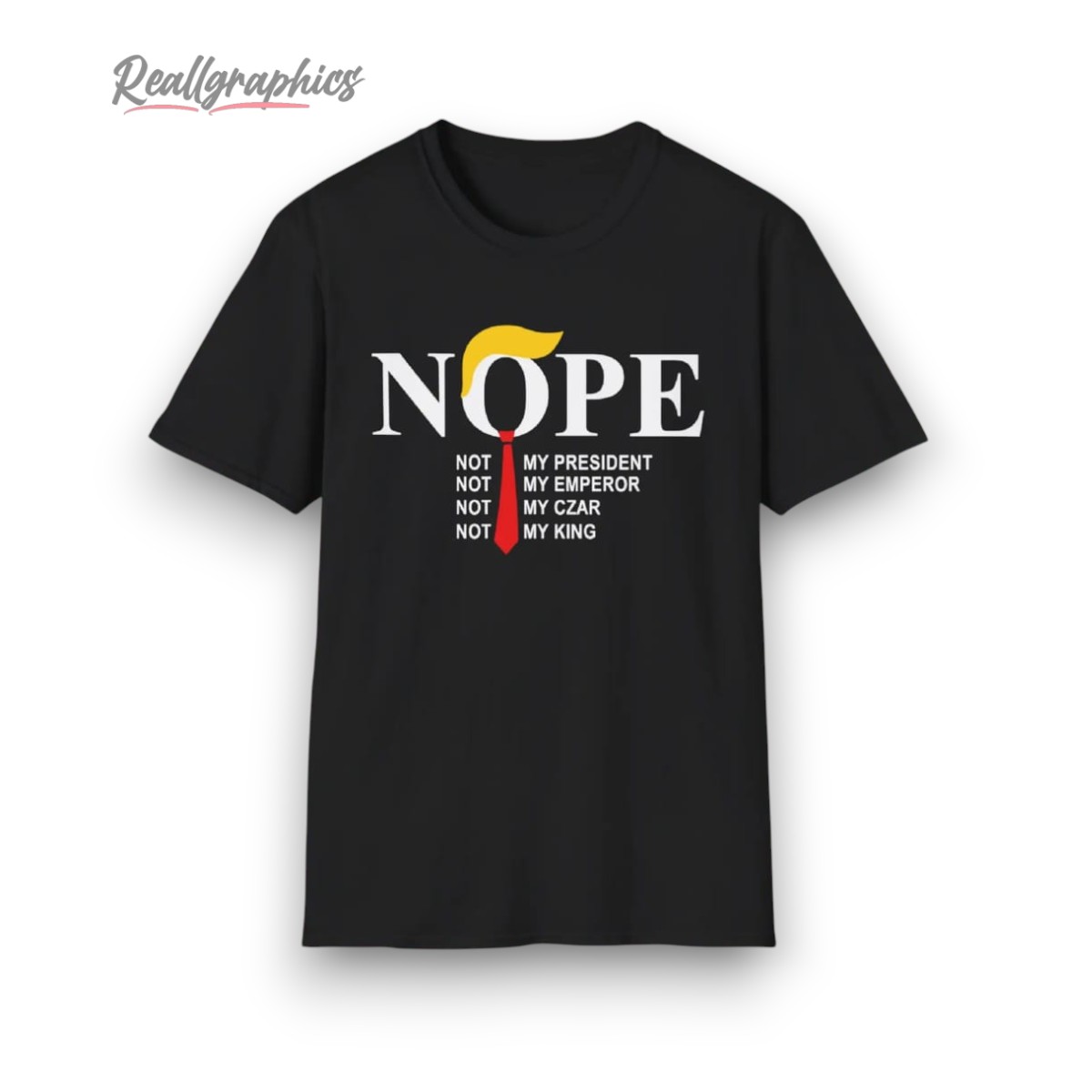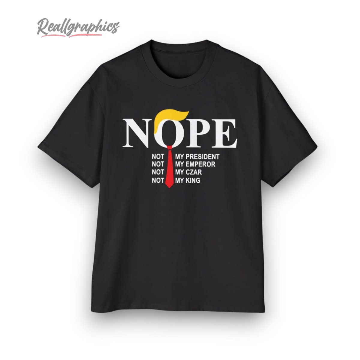 Make a bold statement with this striking graphic tee. Its clever use of text art playfully challenges authority, making it perfect for those who value individuality and freedom. A great conversation starter, this design is ideal for anyone who enjoys thought-provoking fashion with a touch of humor. Perfect for rallies or casual outings, it’s a must-have for your collection.Not My President Not My Emperor Shirt