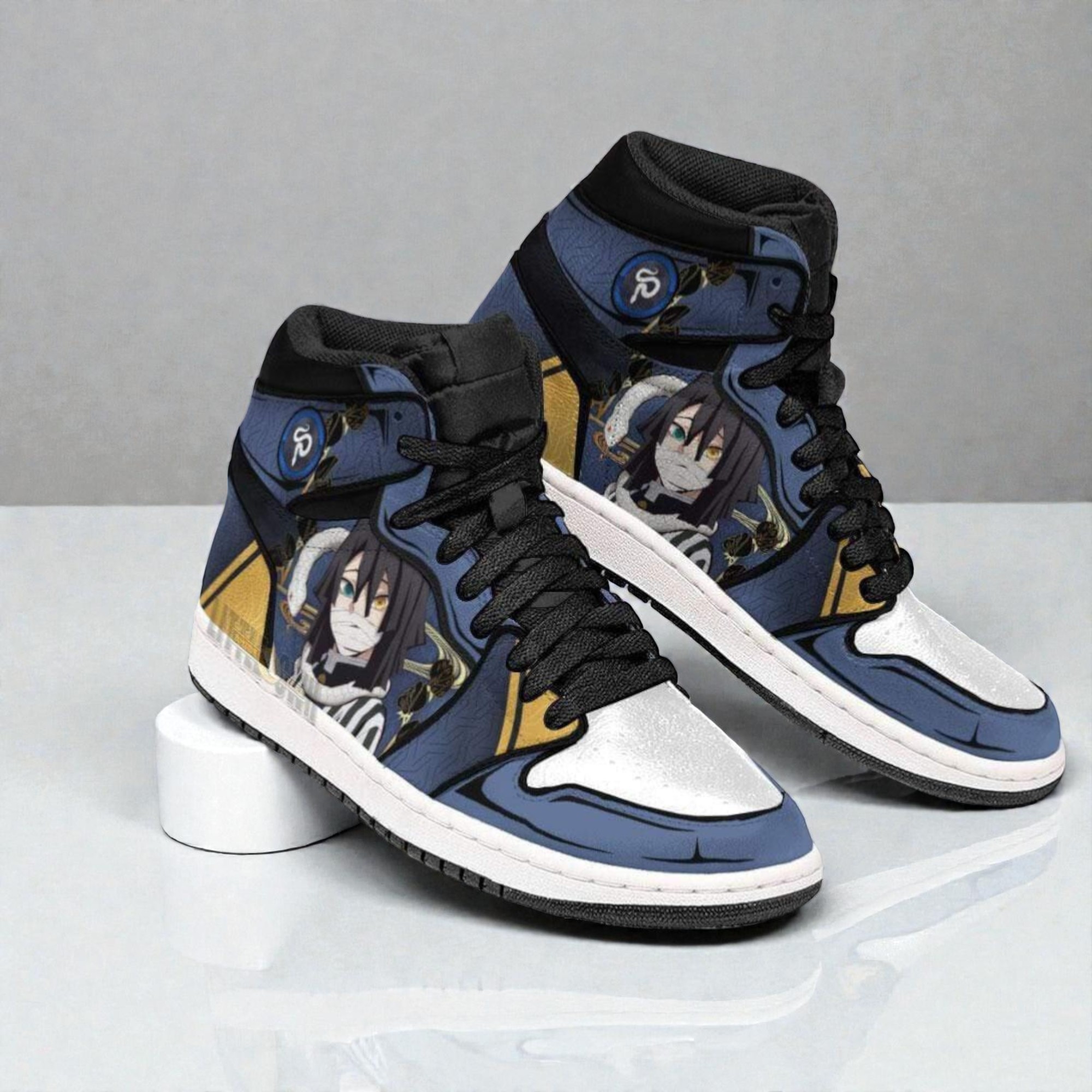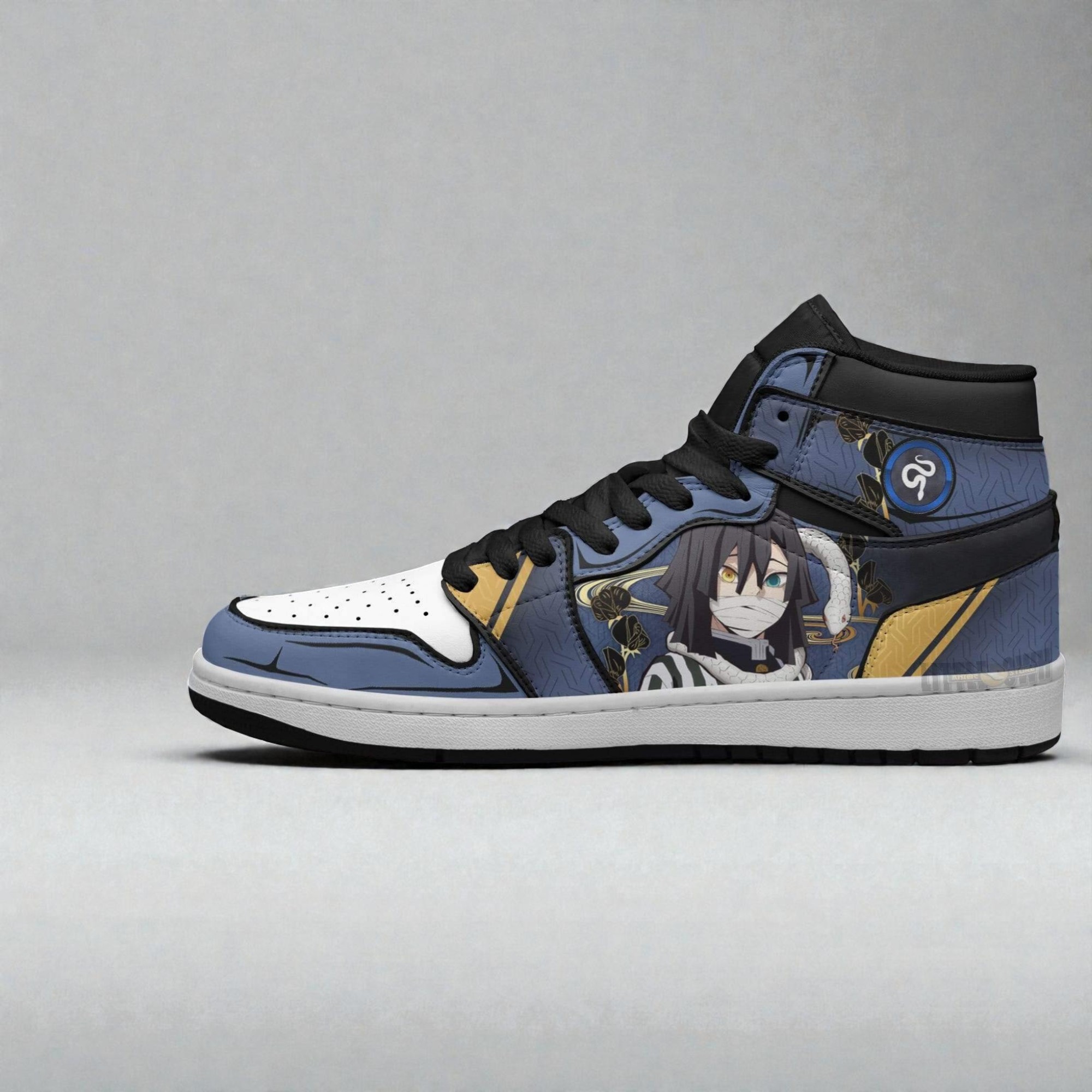 Anyone tuned into the vivid worlds of anime will recognize the striking silhouette of these Jordan sneaker boots, reimagined through the lens of Kimetsu no Yaiba’s Obanai Iguro. The design cleverly balances bold blocks of blue and white, mirroring the character’s distinct attire, with black laces that cut a sharp contrast, anchoring the overall look in streetwear cool. Side panel artwork reveals a graphic portrayal of Obanai, capturing his enigmatic presence without relying on overt text or branding, allowing the imagery to speak directly to those who understand the nuances of his story. What draws the eye here isn’t just the color scheme but the way each element harmonizes to tell a quiet story of dedication and strength—qualities intrinsic to Iguro’s persona. The emblem patch subtly nods to the fan base, creating a visual language that feels both fresh and respectful of the source. These shoes feel less like merchandise and more like a wearable tribute, suited for those who thrive on expressing their fandom without shouting it from the rooftops. They’re right at home whether navigating a crowded convention floor or slipping into urban life’s everyday rhythm. For anyone who lives between these spaces—part enthusiast, part trendsetter—this pair becomes a statement of identity, bridging the gap between anime culture and contemporary street style effortlessly. The Obanai Iguro Jordan sneaker boots custom Kimetsu no Yaiba anime shoes invite you to carry a piece of that world with you, no matter where your day takes you.