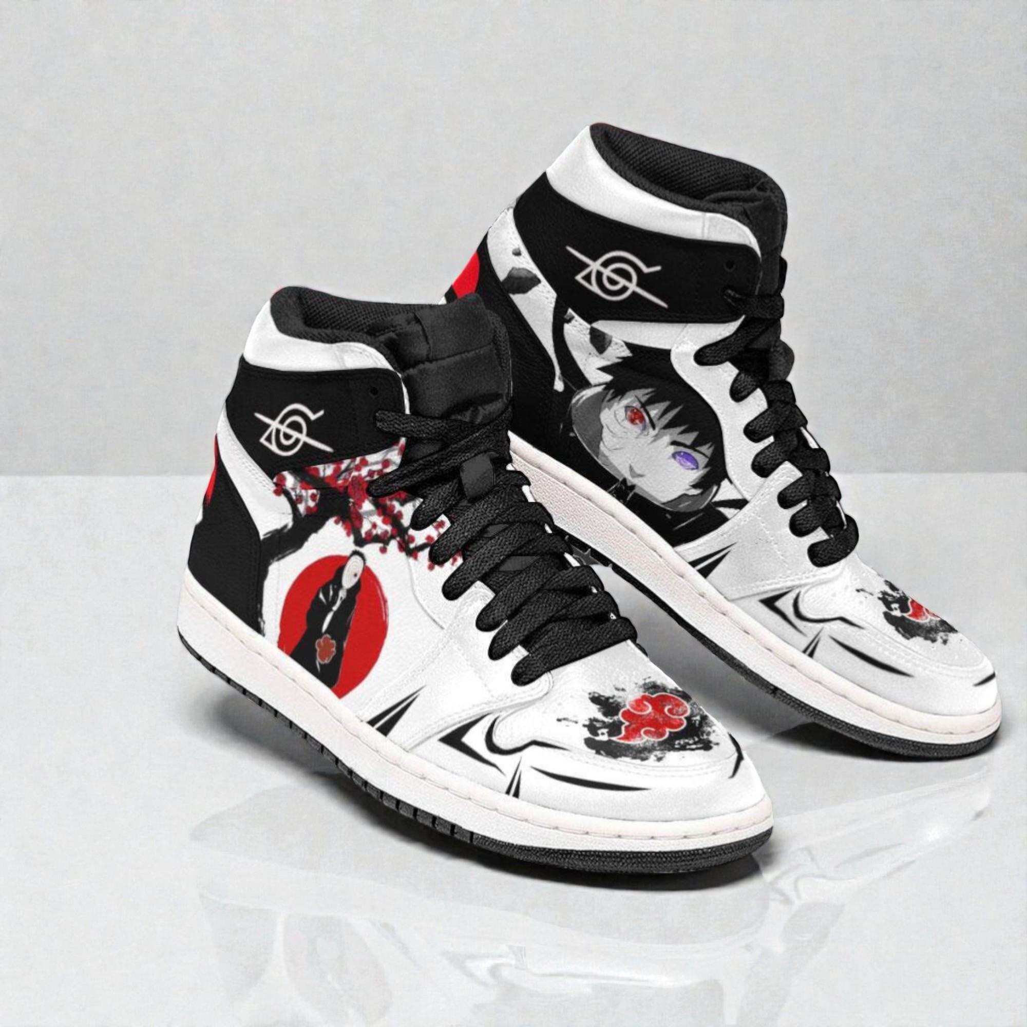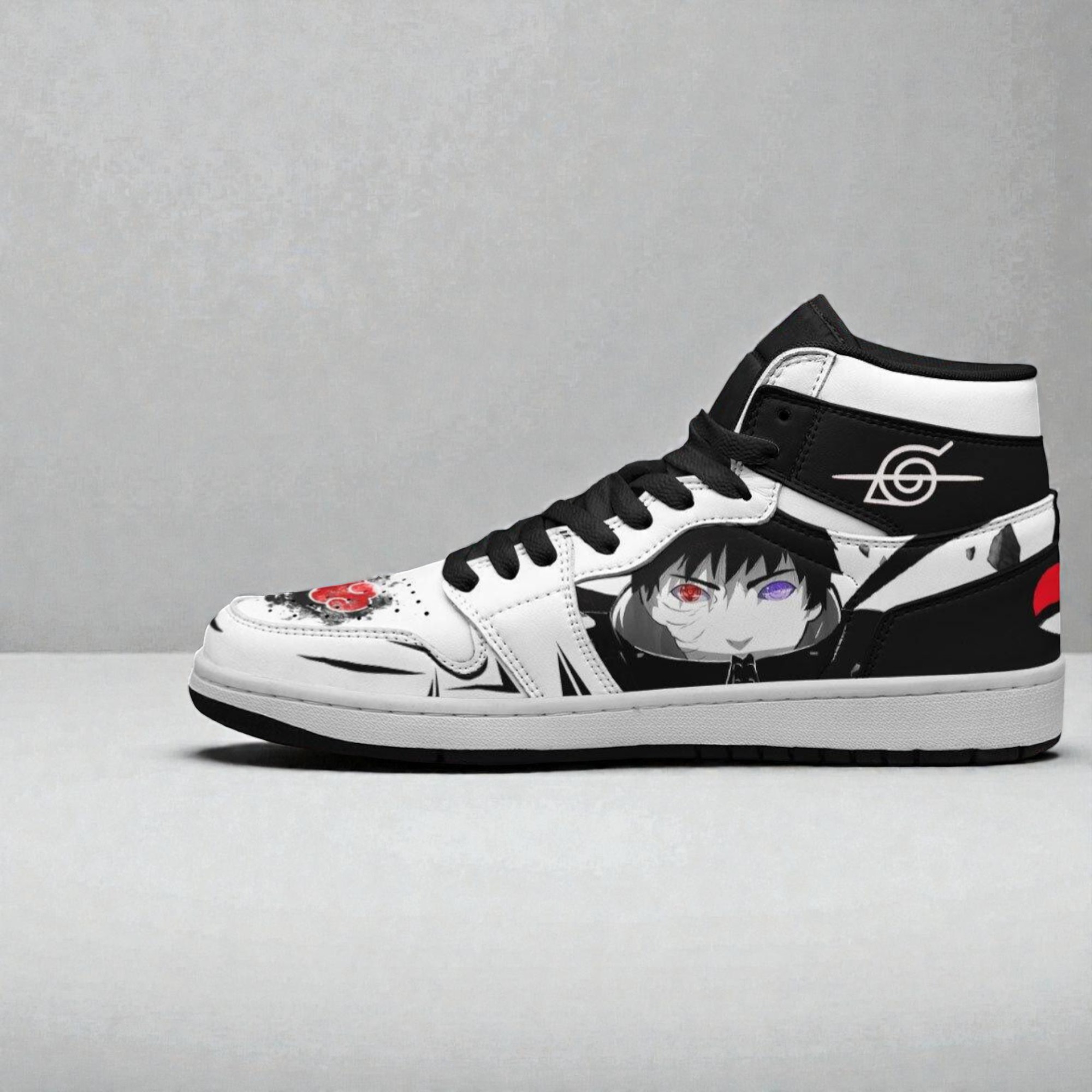There’s a certain magnetism in wearing symbols that echo the darker, more complex figures of your favorite stories—like the mysterious energy Obito Uchiha carries in Naruto. These shoes capture that essence with sharp contrasts of black and white panels that feel almost like shadows playing over them. The front is punctuated by a red rose, a reminder of hidden layers beneath the surface chaos, while the ankle strap proudly displays an emblem that calls out to anyone familiar with the Uchiha legacy. The character’s illustrated face asserts itself with chilling red and purple eyes, demanding attention without saying a word. For those who dive deep into anime culture, these sneakers aren’t just footwear; they’re a statement. They strike a bold, graphic note that feels equal parts rebellious and dynamic—perfect for days when you want your style to speak for your fandom without needing explanation. Whether slipping them on for casual downtown walks, heading out to a convention, or pulling together an edgy cosplay look, they blend seamlessly into the rhythm of everyday life with a unique flair. They also make a thoughtful gesture for anyone who treasures Naruto’s layered characters and the world they inhabit—a gift that acknowledges passion without veering into cliché. Even beyond fans, sneaker collectors who appreciate distinctive, story-driven designs will find something compelling here: a fusion of culture, art, and attitude all tied up in a pair of shoes named after one of anime’s most enigmatic figures.