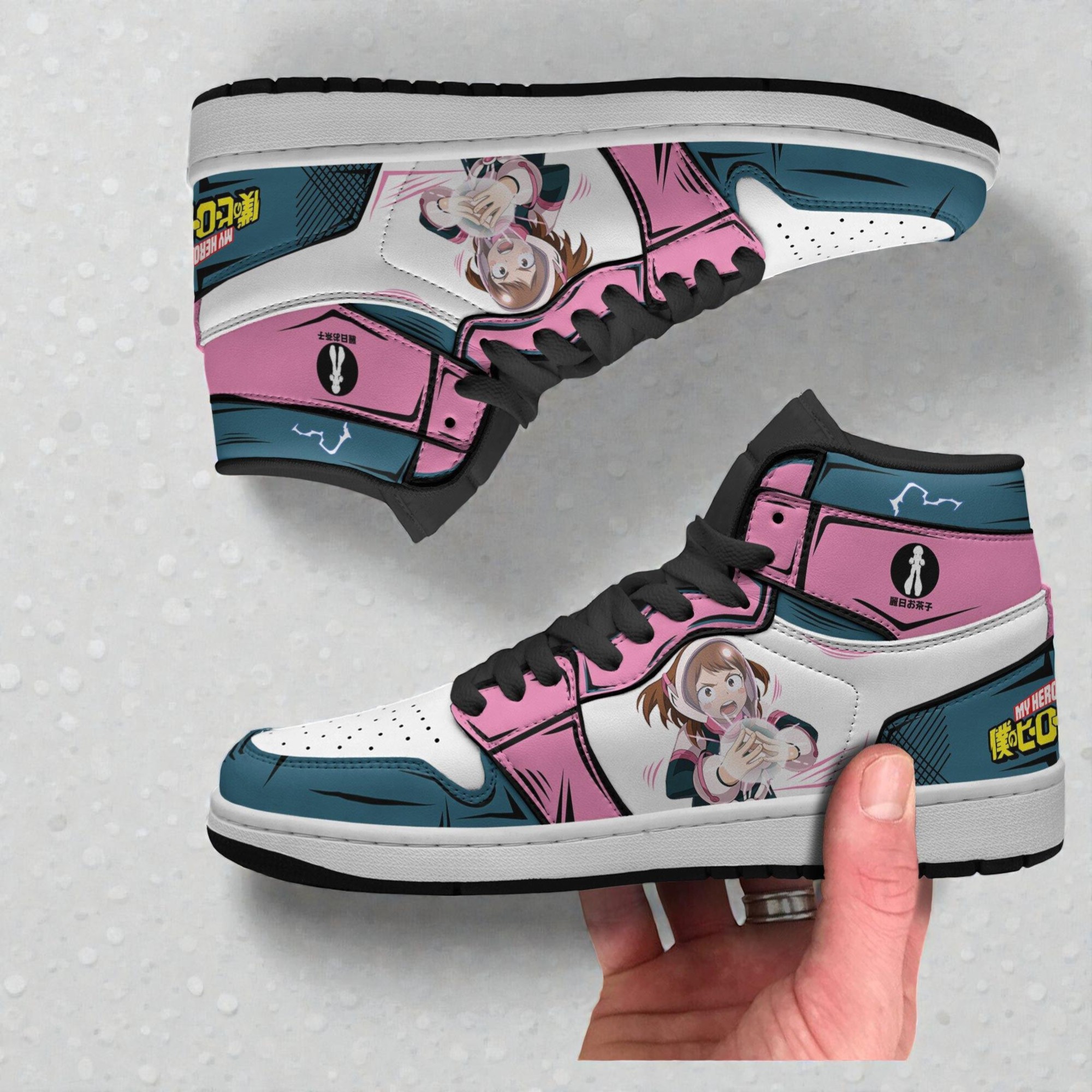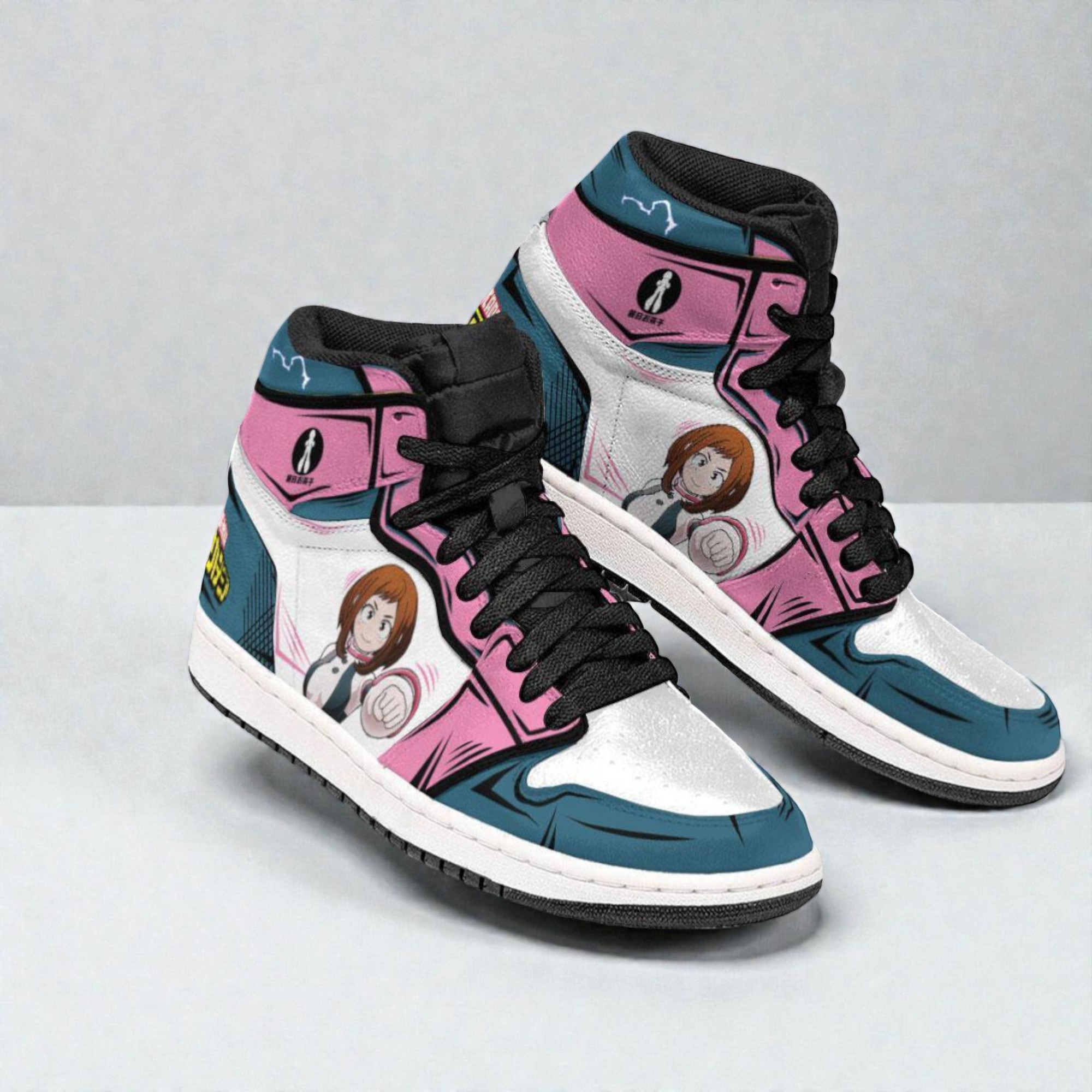 Anime enthusiasts, these vibrant sneakers are adorned with captivating Ochaco Uraraka graphics from My Hero Academia. The bold, colorful design showcases your favorite hero in action, perfect for fans eager to express their passion. Elevate your style with these unique sneaker boots, blending iconic anime art with streetwear flair.