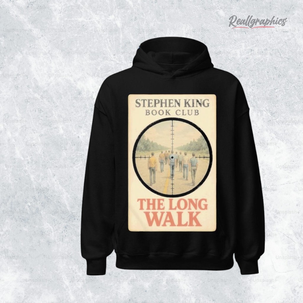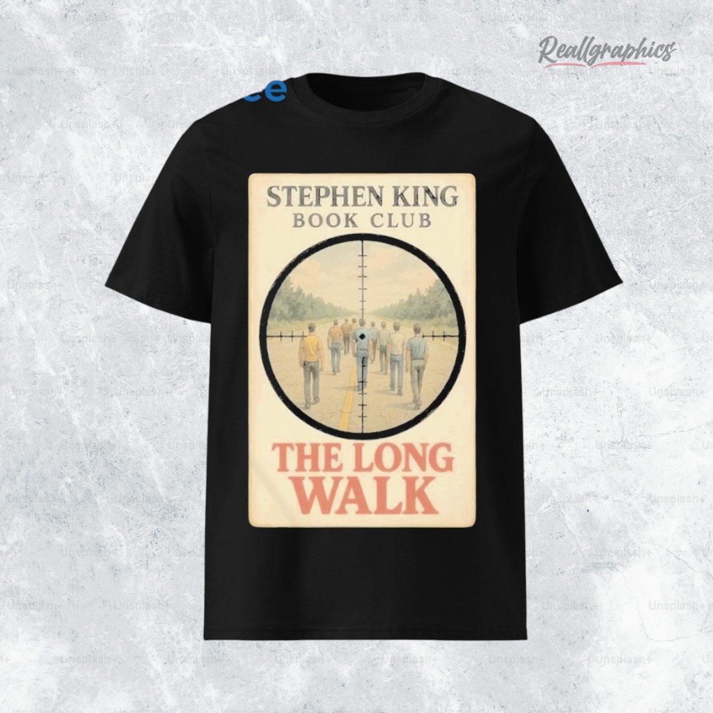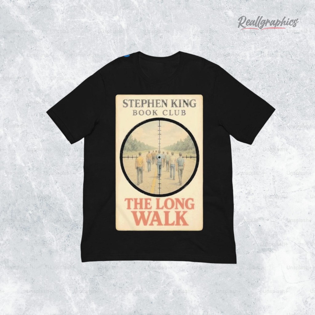 Imagine walking alongside the haunting imagery of Stephen King's gripping tales. This design captures the intense essence of *The Long Walk*, drawing you into its mysterious journey. With every glance, you're reminded of courage and survival in the face of life's challenges. Dive into the world of suspense and storytelling. Ready to wear a story? Grab yours now and join the adventure!Official Stephen King Book Club The Long Walk Shirt