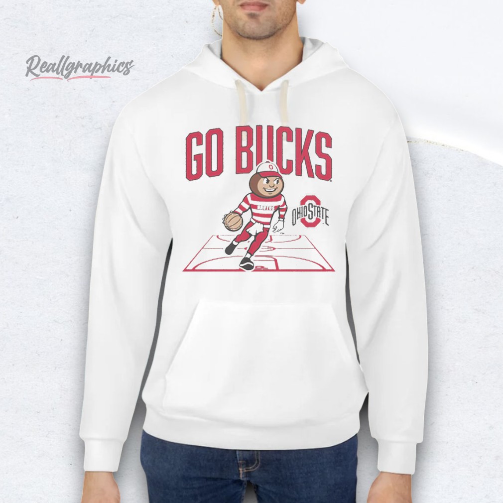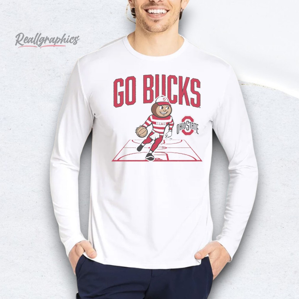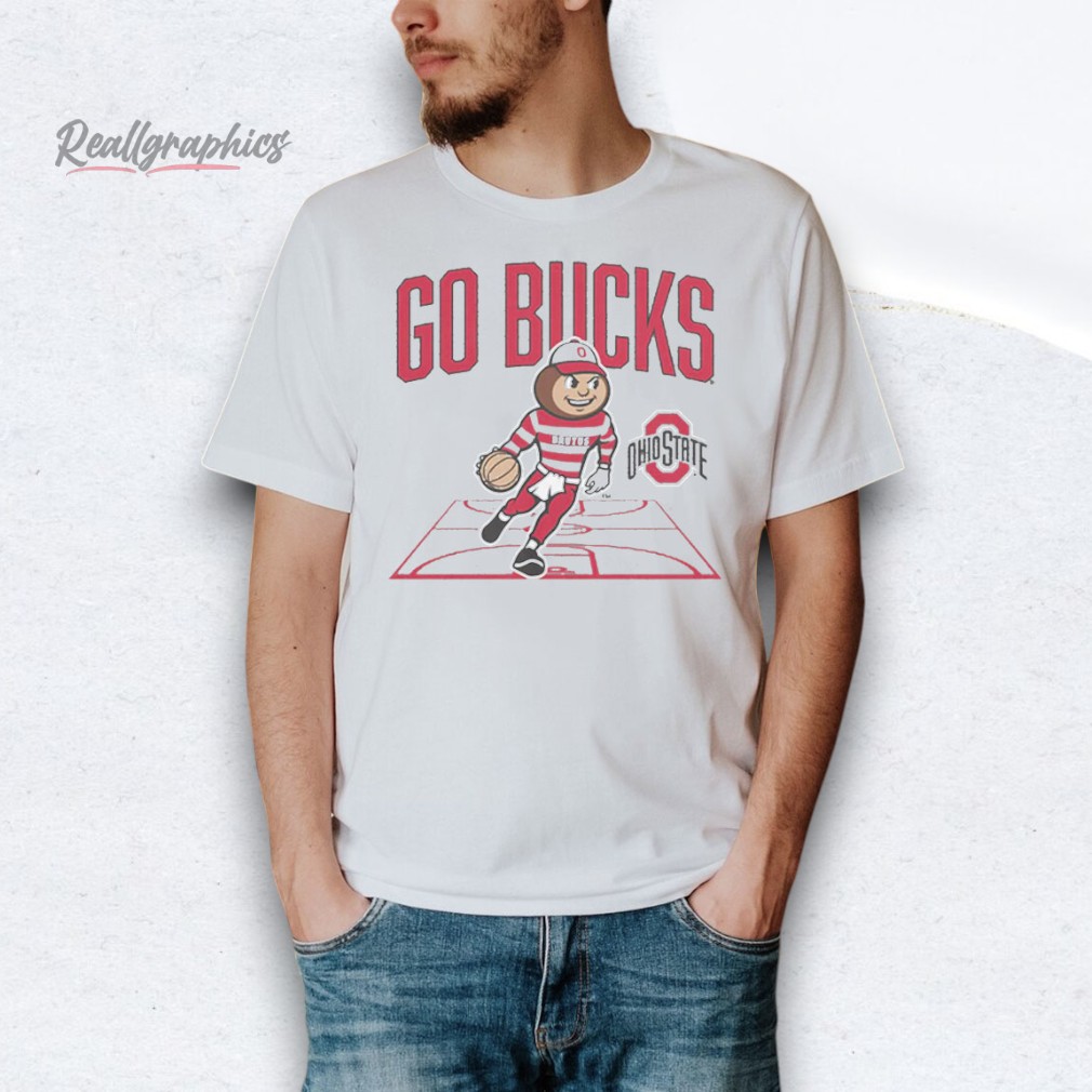 Show your Buckeye pride! This new tee features Brutus Buckeye front and center on a court design. Perfect for game day or repping the Scarlet and Gray around town. Get yours now and let everyone know who you're rooting for! Ohio State Basketball Mascot Court Shirt