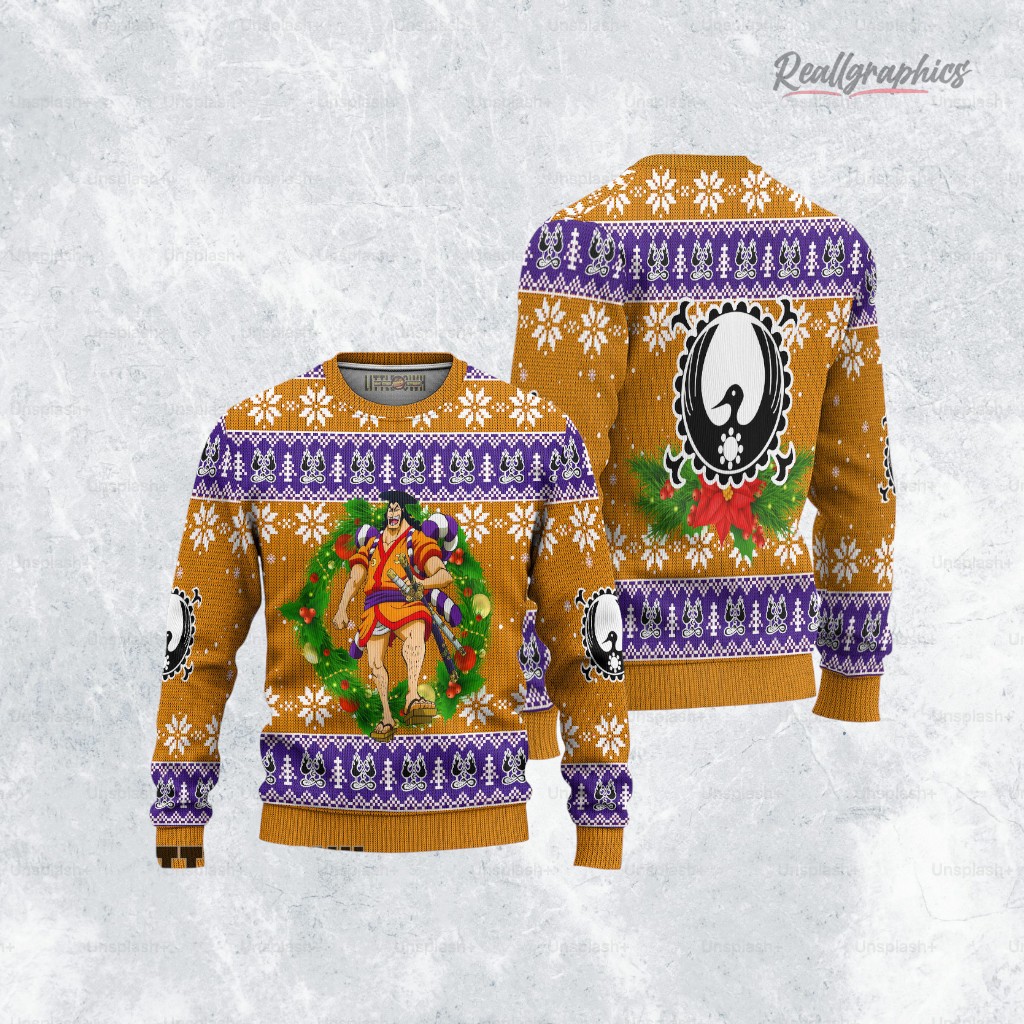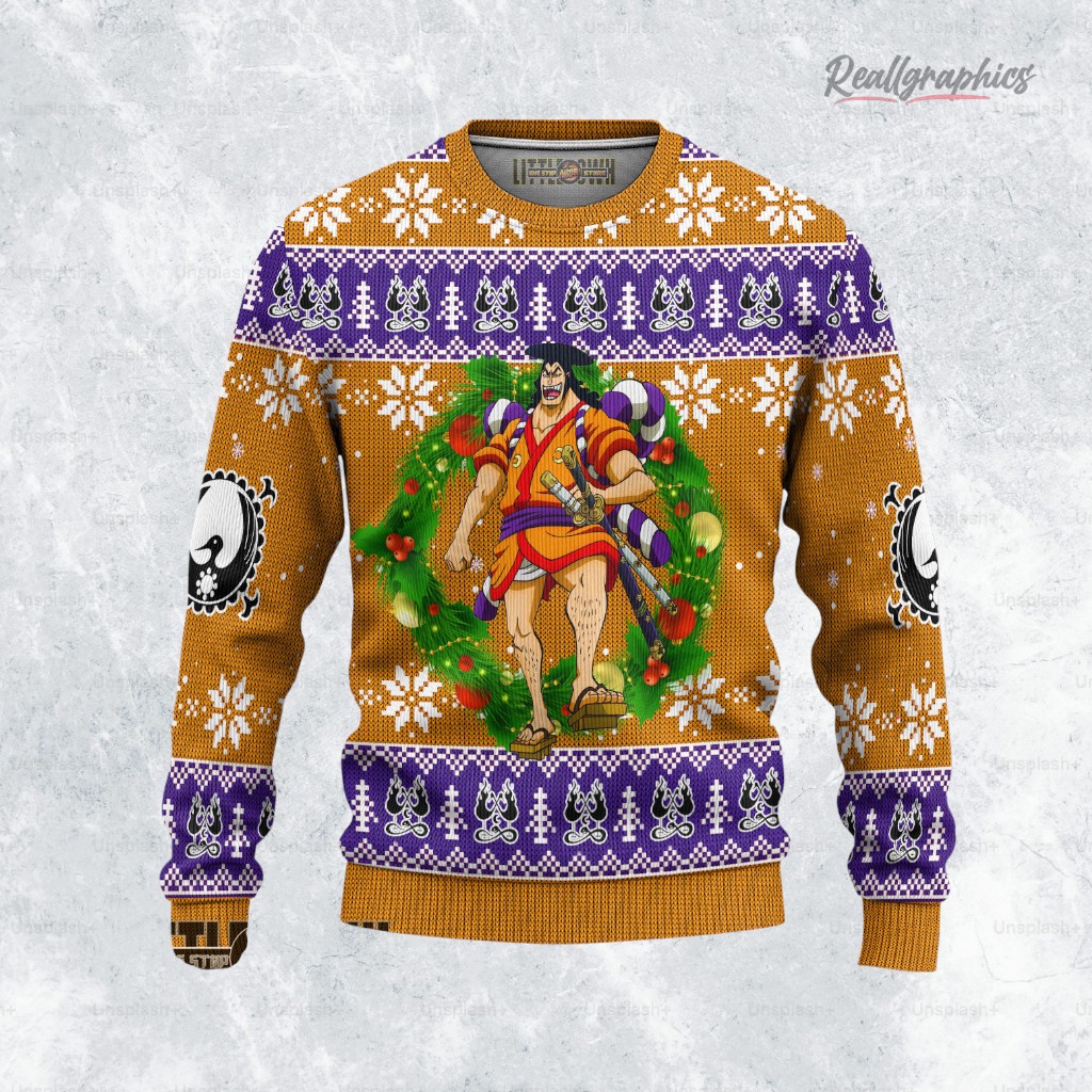 Ahoy mateys! Get ready to set sail into the holidays with this festive Kozuki Oden inspired sweater! Perfect for any One Piece fan looking to make a splash at their next Christmas party. Embrace the spirit of adventure and keep warm this winter!