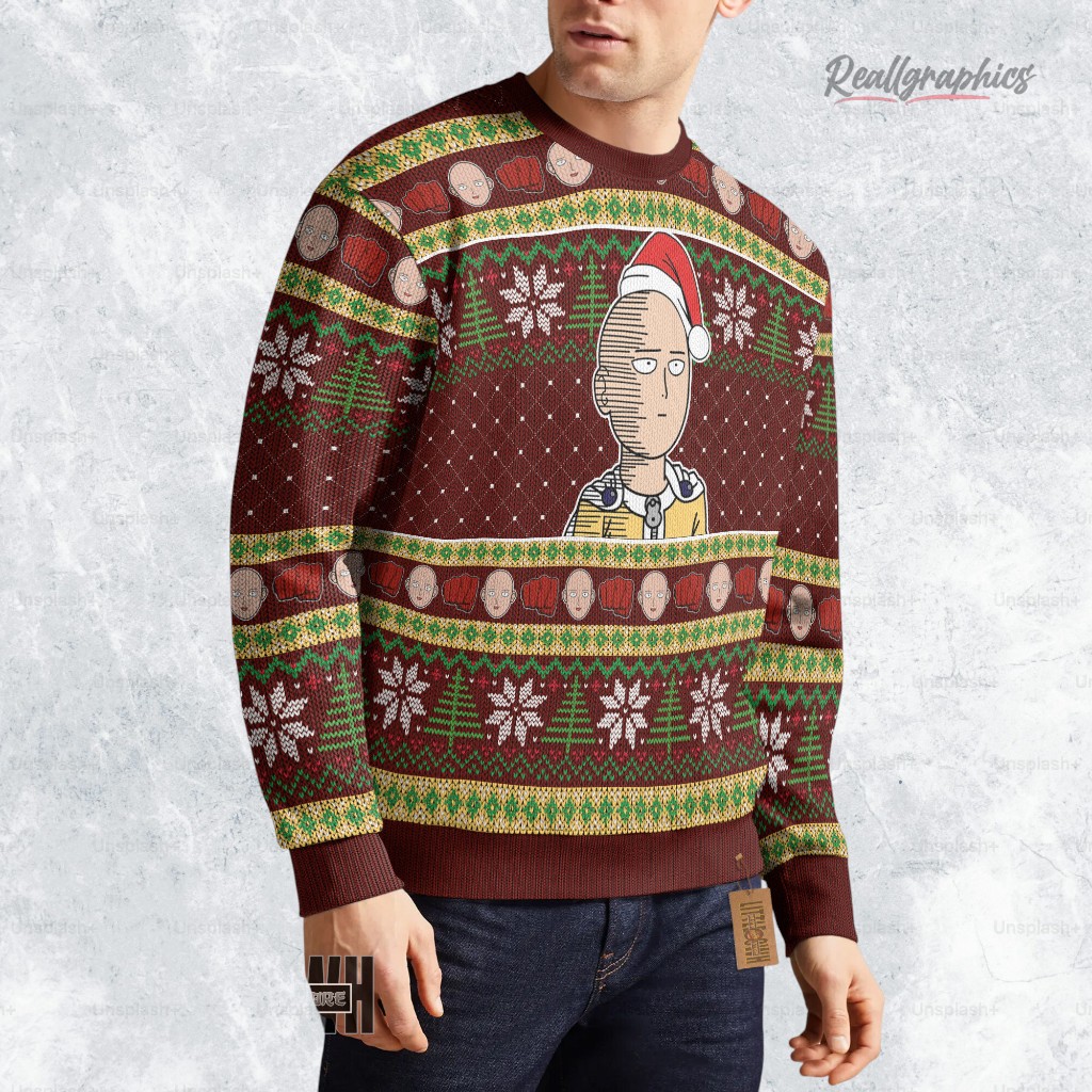 Show off your love for the Caped Baldy this holiday season! This festive sweatshirt features Saitama in all his glory, making it the perfect conversation starter at any party. Get yours now and spread some heroic holiday cheer! 💪