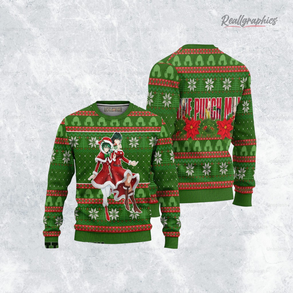 Sisters united! 💚🌪️❄️ This festive sweatshirt is the perfect gift for any OPM fan. Cozy up this holiday season with Tatsumaki and Fubuki! Get yours now and spread some psychic cheer. Limited stock available!