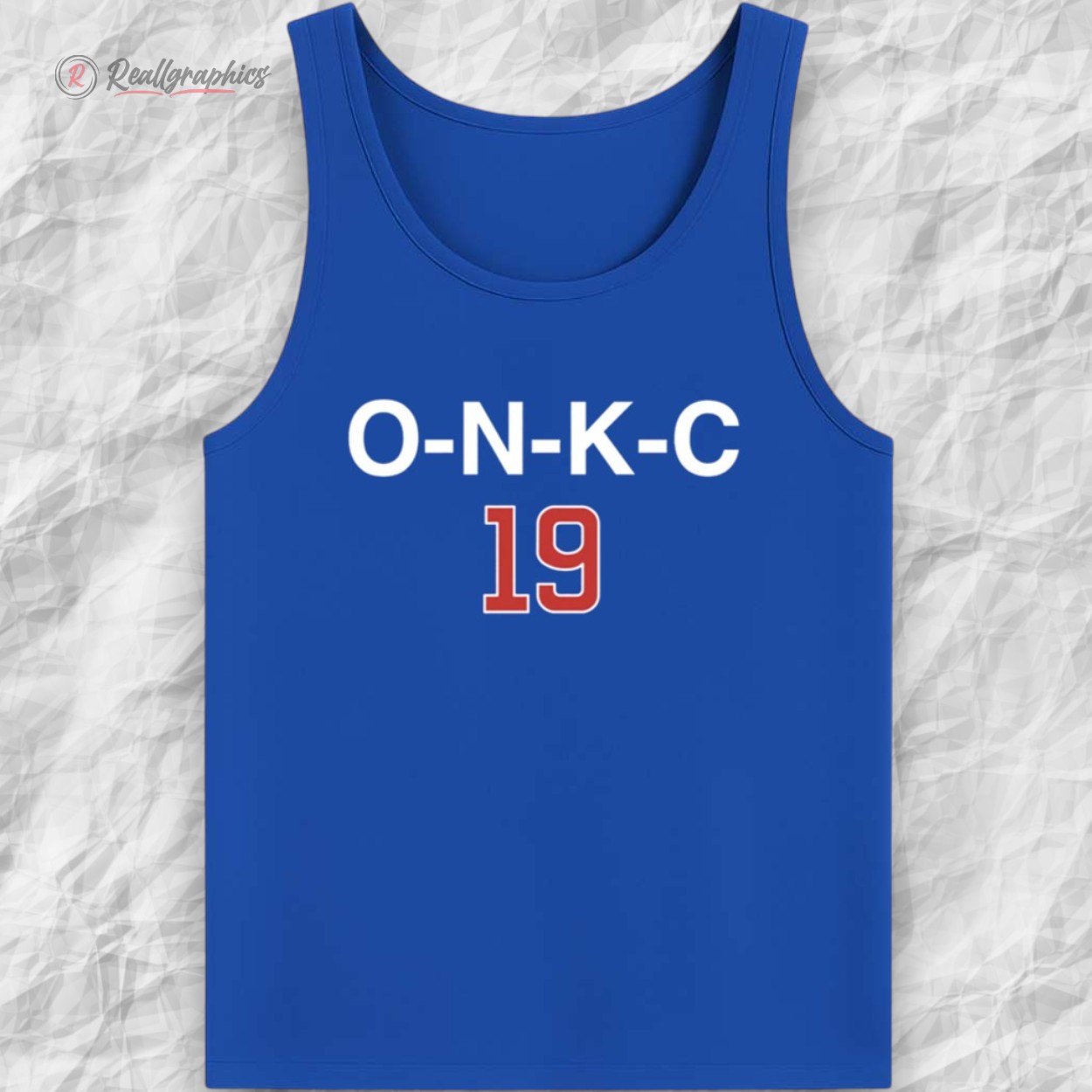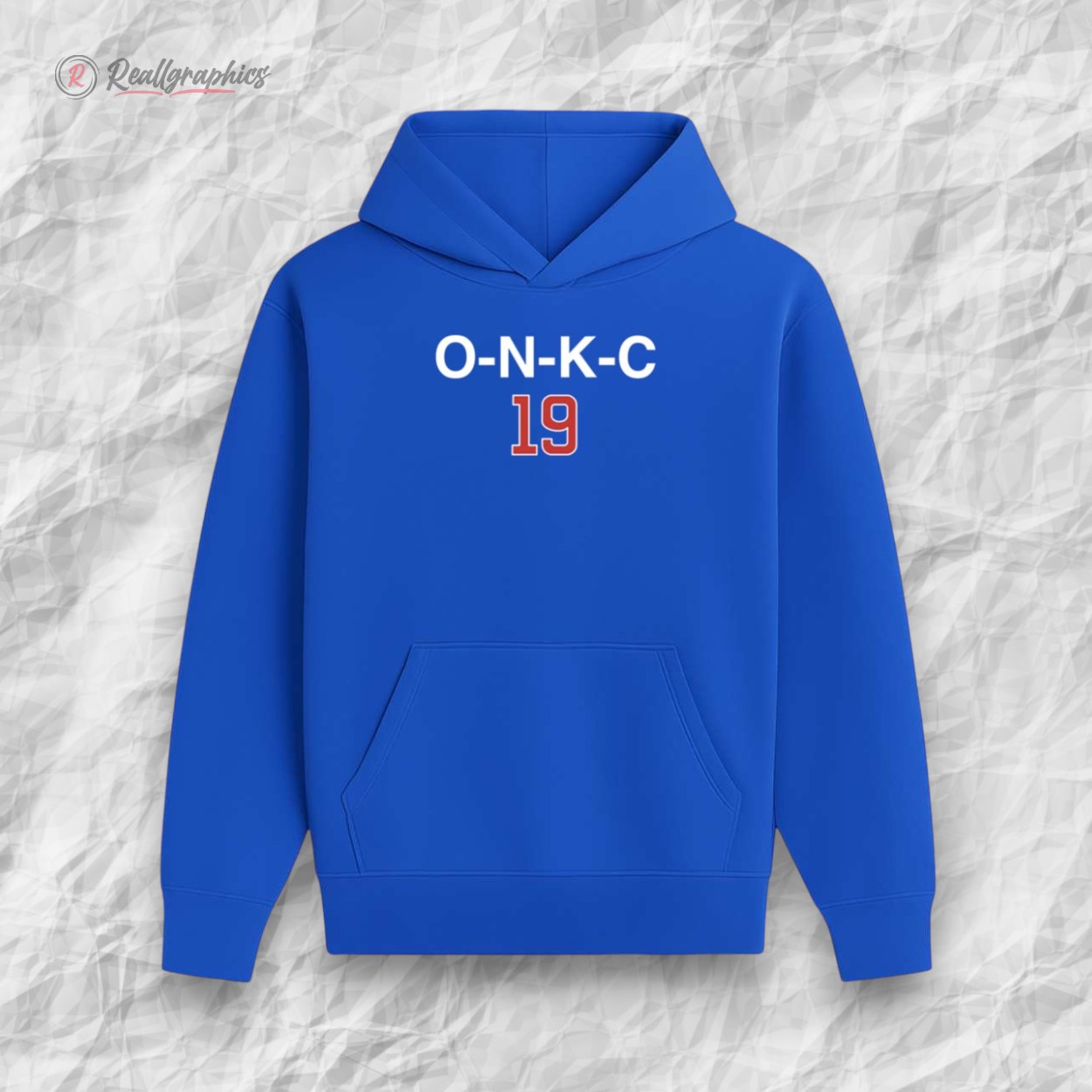 This sweatshirt is all about bold, understated team loyalty. Featuring the acronym "O-N-K-C" in clean white block letters across the chest, it makes a statement that true fans will instantly recognize. Below the text, the number 19 stands out in a vibrant red with a white outline, providing a sharp contrast against the deep royal blue fabric.