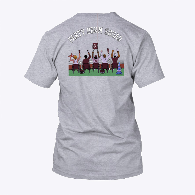 A cluster of animated fans raises their arms, caught mid-cheer beneath a broad banner declaring PARTY BERM SQUAD in bold, varsity-style letters that curve gently across the chest. The colors stick to a classic collegiate palette—deep maroon contrasting sharply with crisp white and subtle accents of gray—making the design pop without overwhelming. At center stage, the Bulldog mascot is rendered in a playful, cartoonish style that balances spirited rivalry with a lighthearted vibe. The shirt captures a slice of game day culture, where the energy of the crowd and the pride of the team ripple through every cheer and every flag waved. It’s the kind of design that taps into the communal thrill of tailgates and alumni gatherings, reflecting a collective identity without taking itself too seriously. The text and imagery work together to portray not just a team and a sport, but the shared joy and camaraderie of those who live for the moments when friends and rivals alike come together. Someone who wears a Mississippi State Bulldogs shirt like this is proud but approachable, someone who appreciates the casual side of fandom—whether they’re heading out early on a Saturday morning or just catching a game with friends. It also fits well into a closet of sports supporters who want to express their loyalty with a bit of humor, making it a thoughtful gift for anyone who roots for the Bulldogs, whether alumni or lifelong fans. The design’s ease and energy make it simple to pair with jeans or shorts for a comfortable, spirited look.