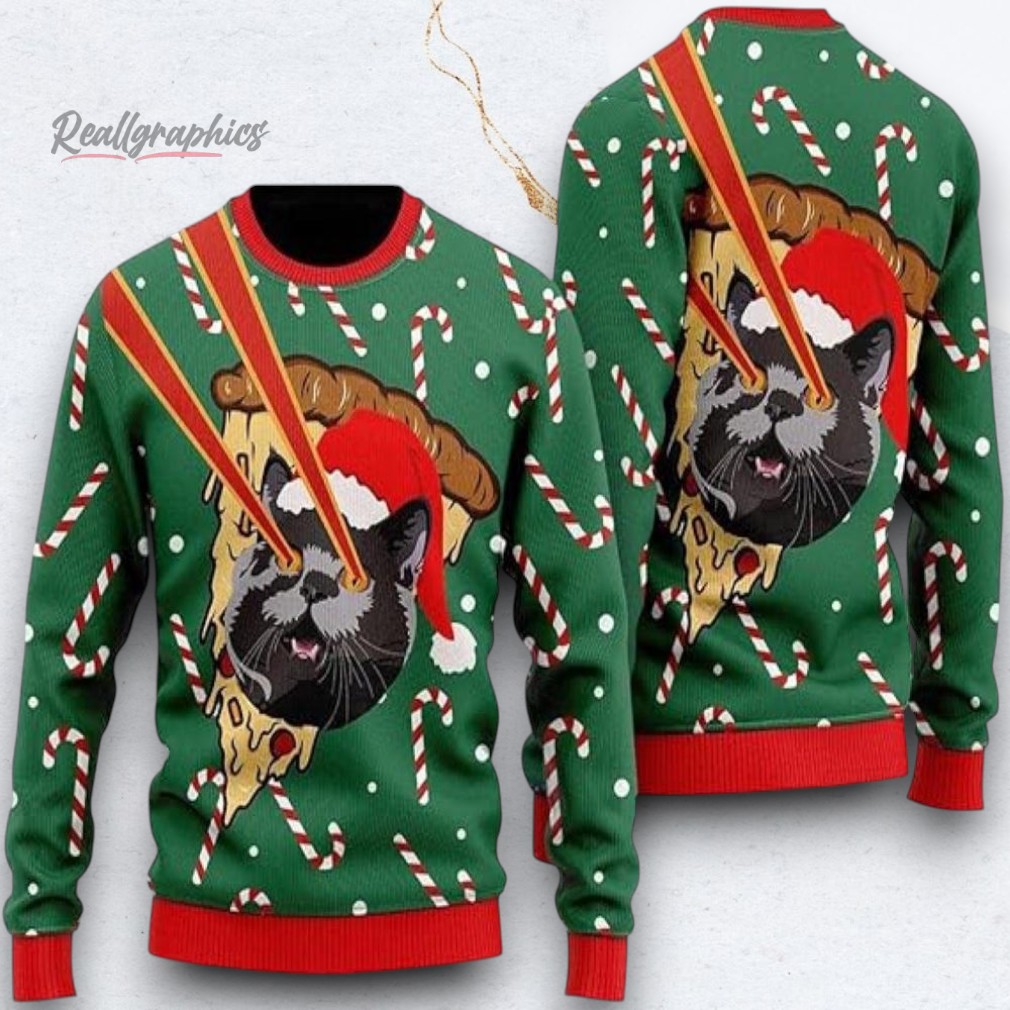 Pizza Cat Laser Eye Ugly Christmas Sweater Christmas Gift For Cat Love Christmas Fashion Winter