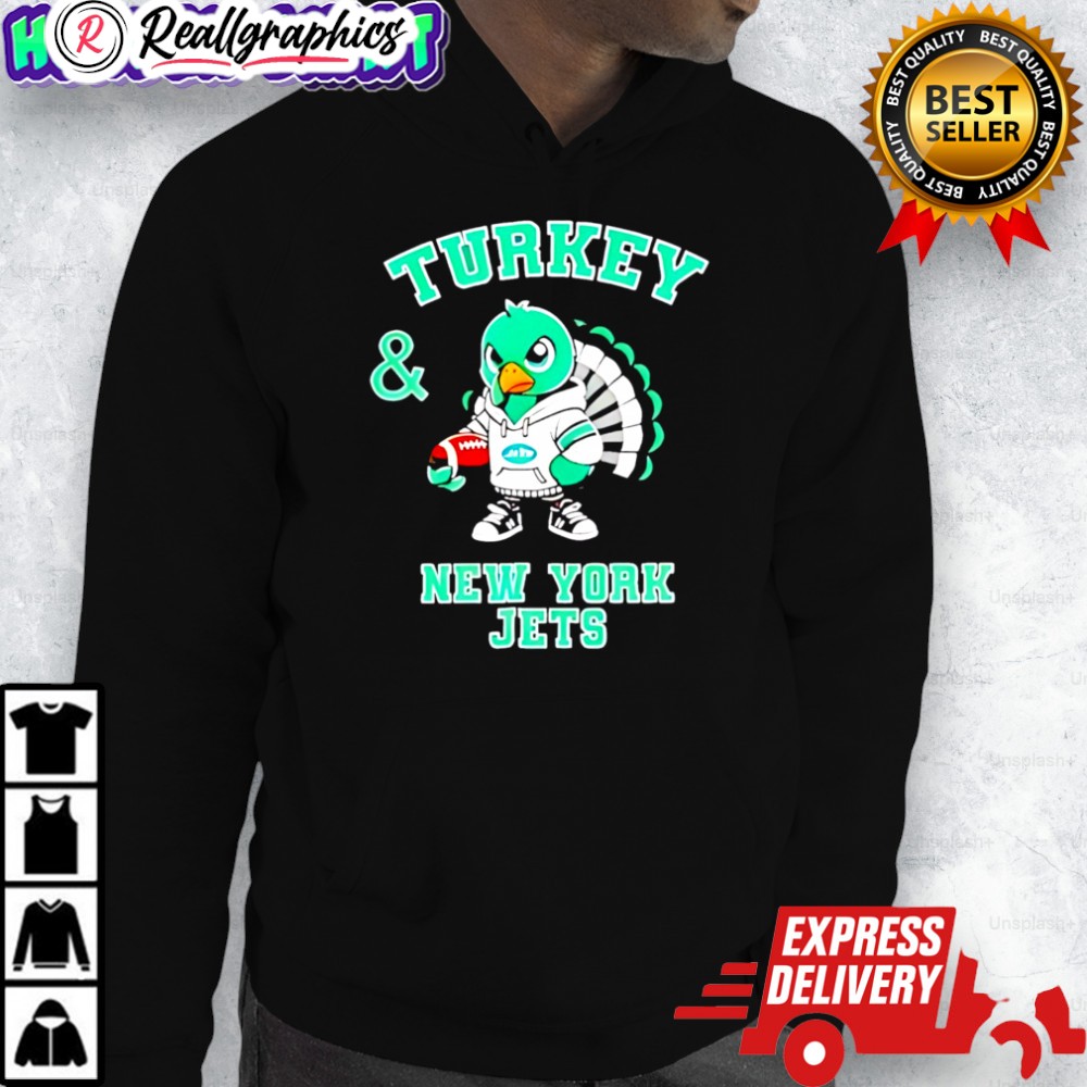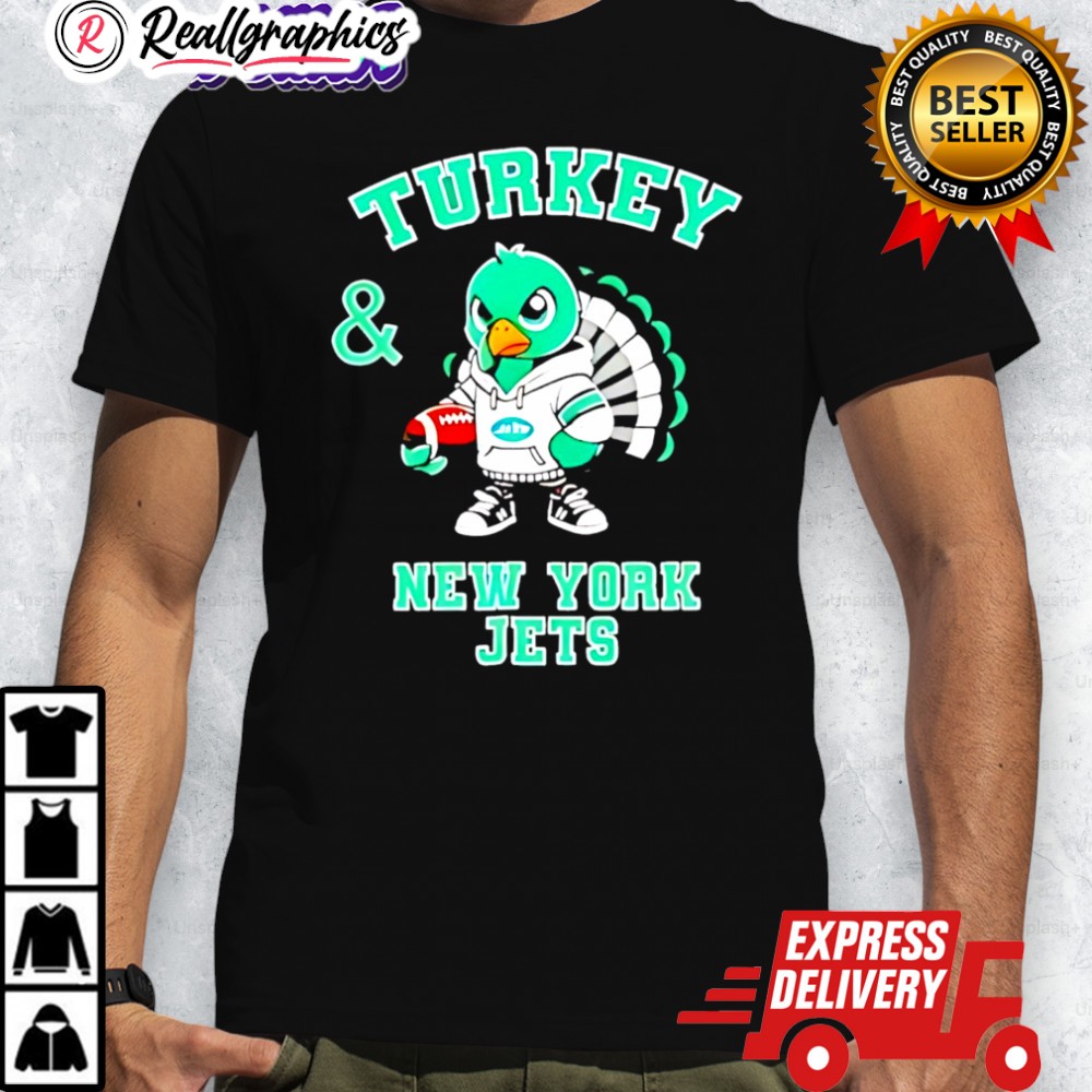 Happy Thanksgiving! Show your team spirit with this perfect shirt for football fans. Enjoy turkey and cheer on the New York Jets! Get yours now and celebrate the holiday in style.