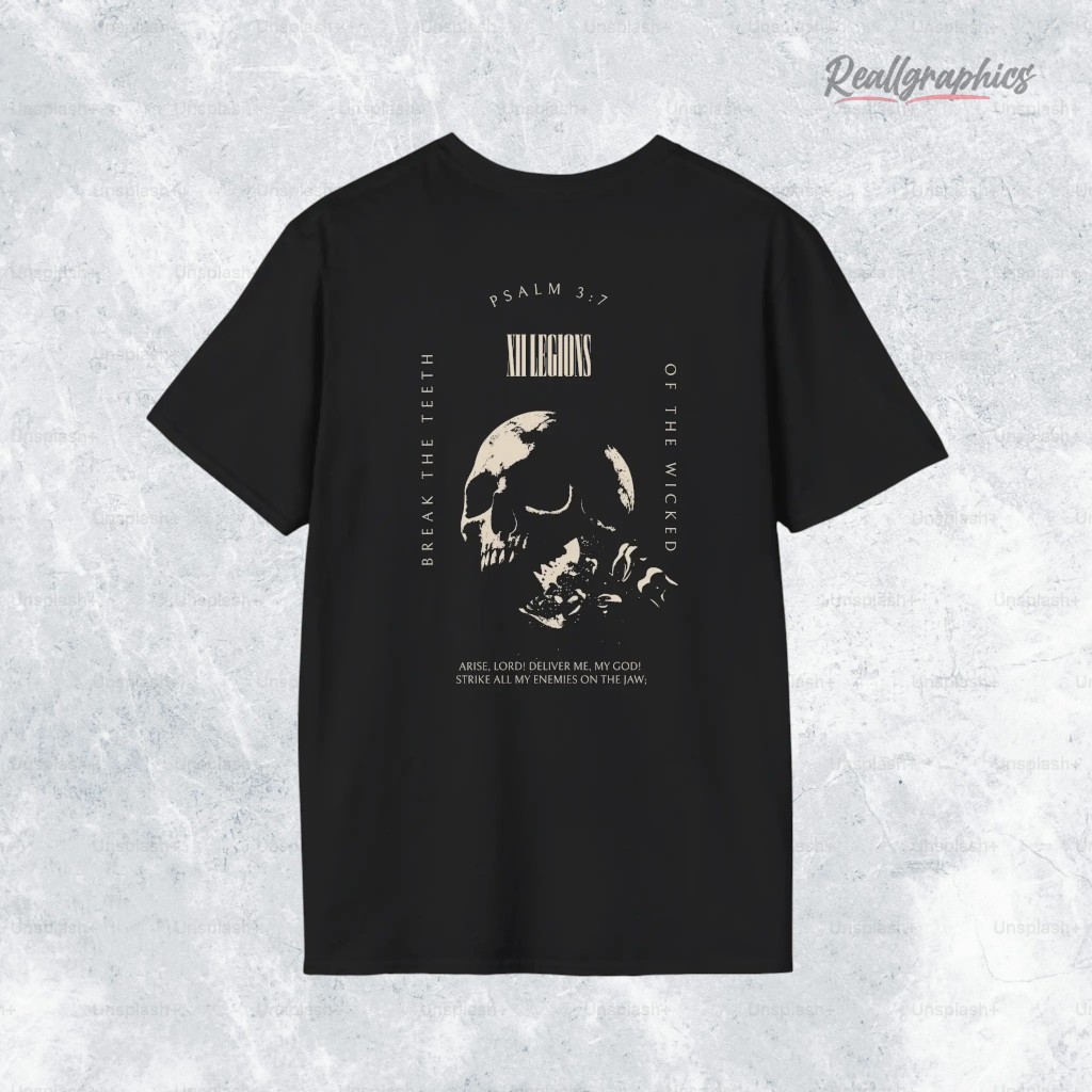 This shirt captures a bold moment of reflection and strength, featuring a striking skull design alongside powerful words. It's like wearing a shield, a reminder of resilience and inner courage, drawn from timeless wisdom. Whether you're adding a statement piece to your wardrobe or seeking a gift that inspires, let this design speak to you. Ready to wear your story? Grab yours now!PSALM 37 Shirt
