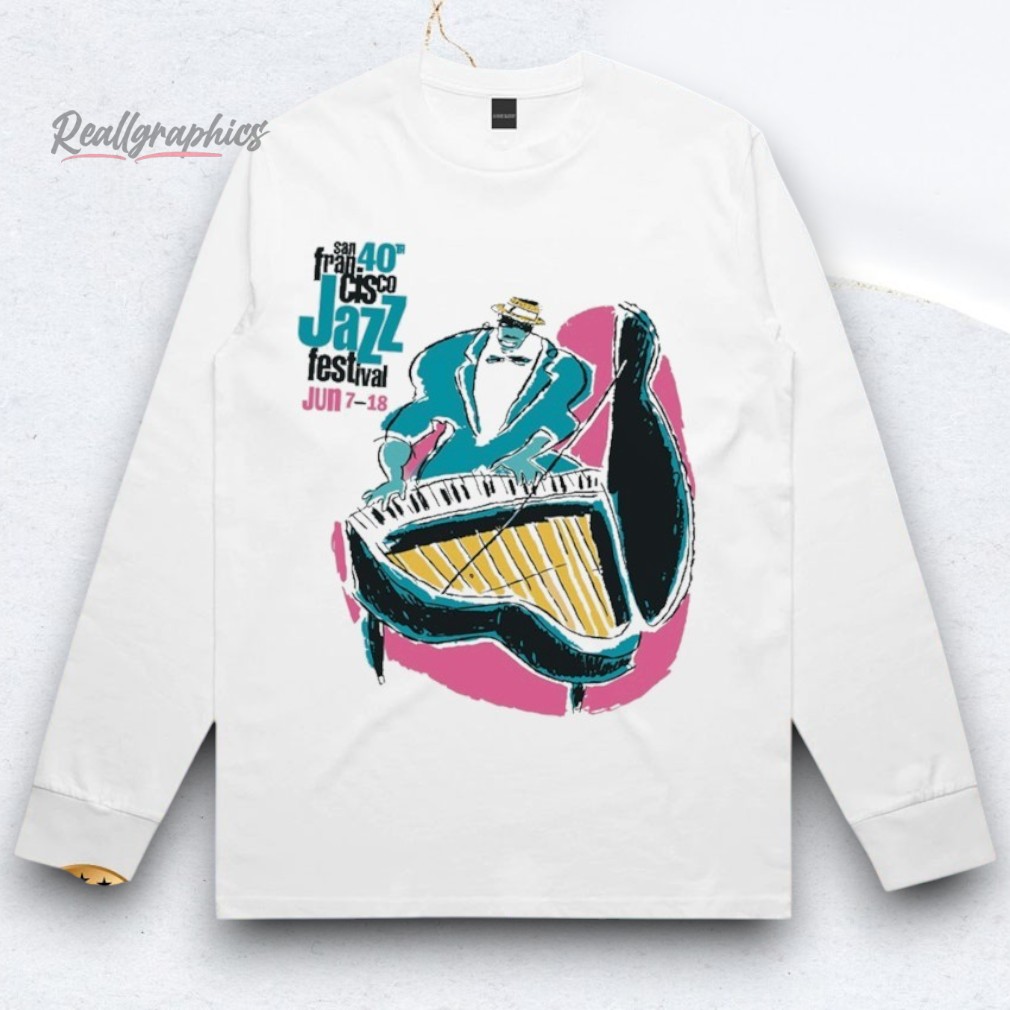 Celebrate four decades of incredible music! Limited-edition shirts are here, commemorating a milestone year for piano at the festival. Get yours now and wear your love for jazz! Available in various sizes. San Francisco Jazz Festival Piano 40th Shirts