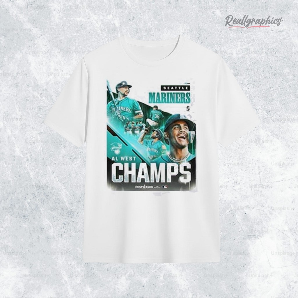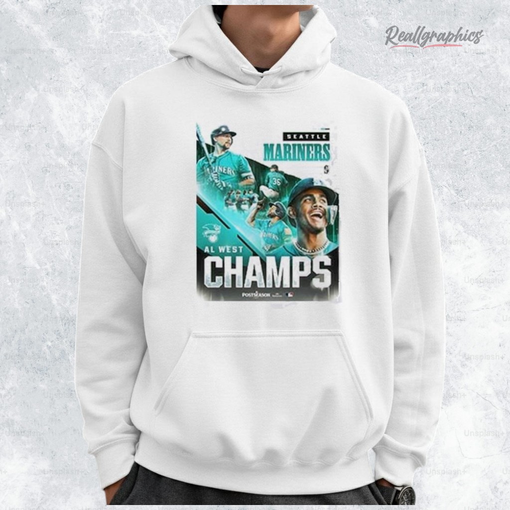 This seattle mariners sweatshirt design captures the excitement of the 2025 AL West Championship. Imagine the roar of the crowd as you wear this vibrant tribute to victory, featuring dynamic player images and bold CHAMPS lettering. It’s not just a shirt; it’s a story of triumph and team spirit. Ready to celebrate every game day in style? Grab yours now and relive the champion moments!