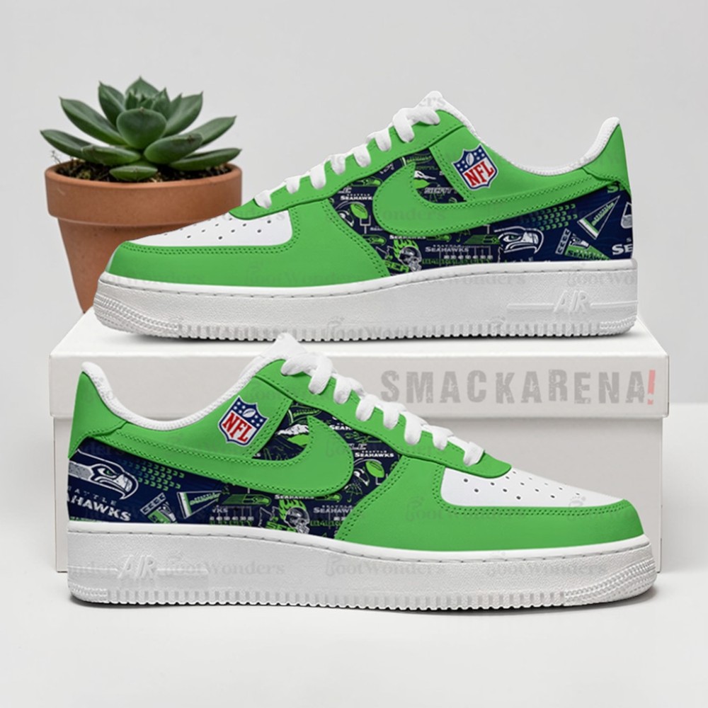 The energy of game day pulses through every stitch of these Seattle Seahawks Nike Air Force 1 shoes. The bold green and white palette is not just a nod to the team’s colors but a statement of connection—a visual anthem for anyone who carries the Seahawks spirit beyond the stadium. Graphic collage patterns wrap the sides, blending iconic logos and the NFL shield into a dynamic, sporty mosaic that feels alive with momentum. This design isn’t about subtlety; it’s about owning a shared identity and celebrating the pride that comes with it. Fans recognize the power in those logos—they symbolize community, resilience, and a history of triumph that runs deep. These shoes hold that energy, offering a contemporary spin on a classic silhouette, grounding personal style firmly in fandom without overt slogans or heavy text. Collectors or lifelong supporters will find something genuine here: a piece that feels crafted for those who don’t just watch the game but live it, who wear their allegiance as naturally as they put one foot in front of the other. Beyond game day, these shoes fit right in with casual, street-smart looks, easily crossing over into moments where passion and everyday life intersect. They also carry the quiet confidence of a thoughtful gift—one that speaks directly to someone’s inner fan, a trophy for personal expression as much as team pride. This is footwear that resonates on its own terms, blending the legacy of the Seattle Seahawks with a style that’s unmistakably individual.