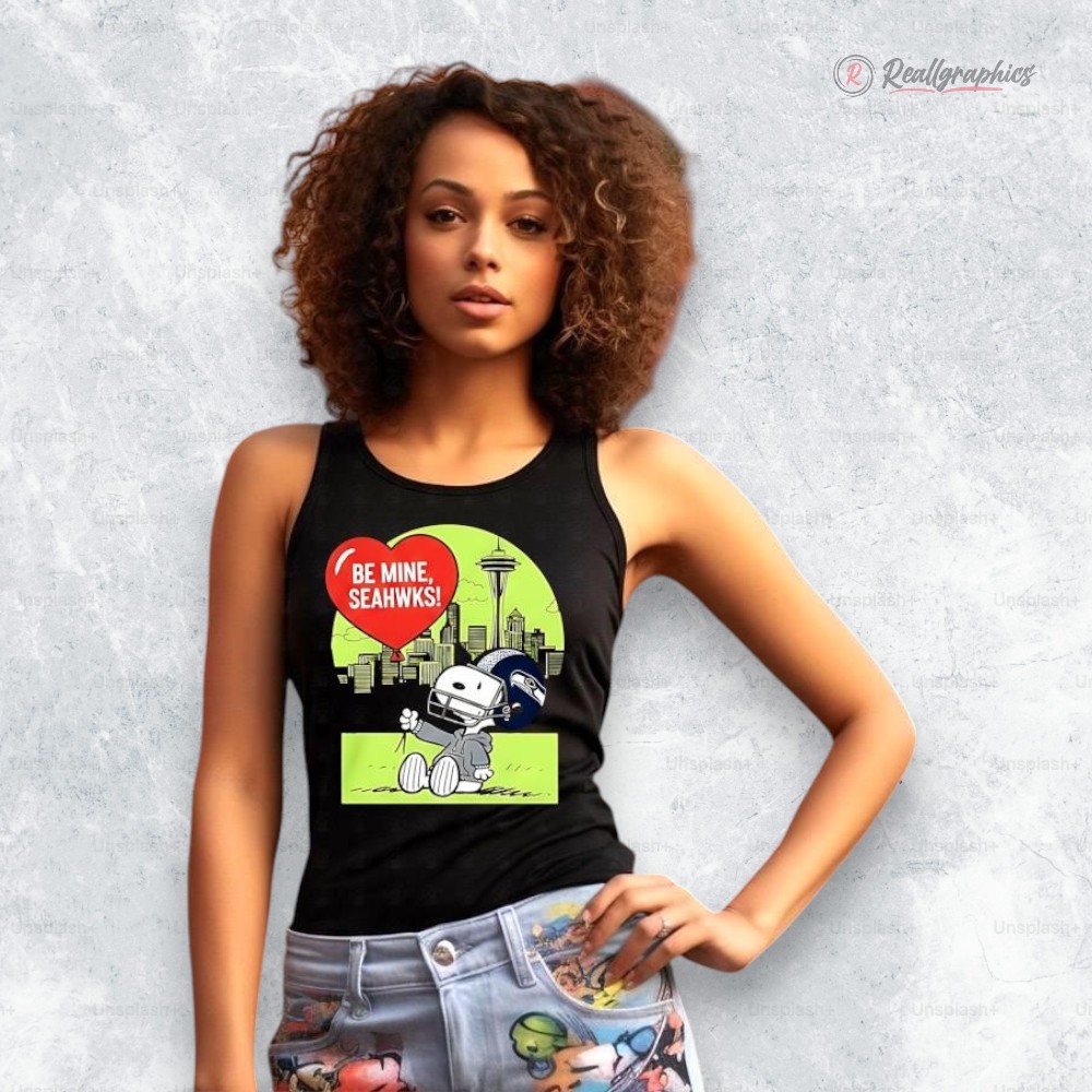 Celebrate your love for football and timeless cartoon charm with this Seattle Seahawks X Snoopy Valentine Shirt. Featuring Snoopy holding a heart that reads “Be Mine, Seahawks” against a Seattle skyline backdrop, this design blends team pride with a playful Valentine’s Day vibe.