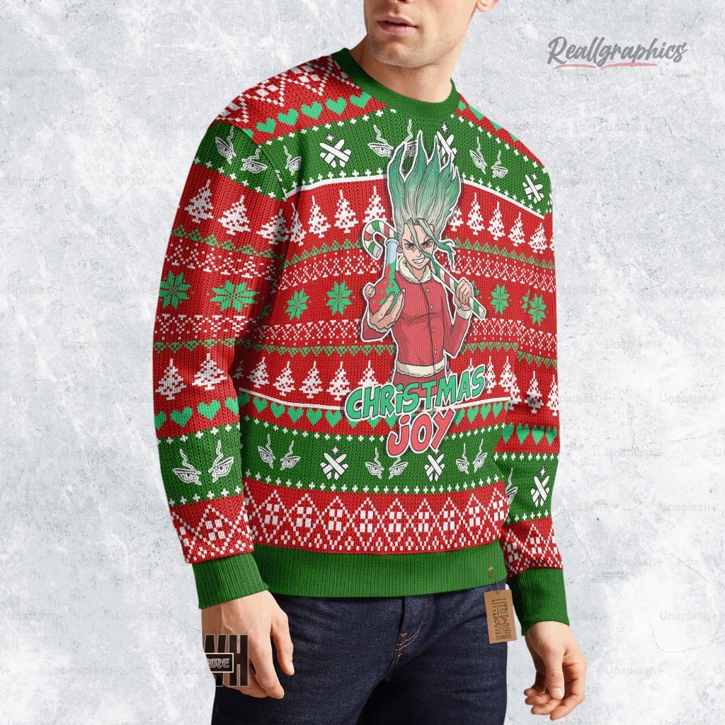 Get ready to science the holidays! ✨ This Dr. Stone sweatshirt is the perfect way to show off your love for the series with a unique, festive twist. Snag yours today and spread some scientific cheer! 🧪🎄