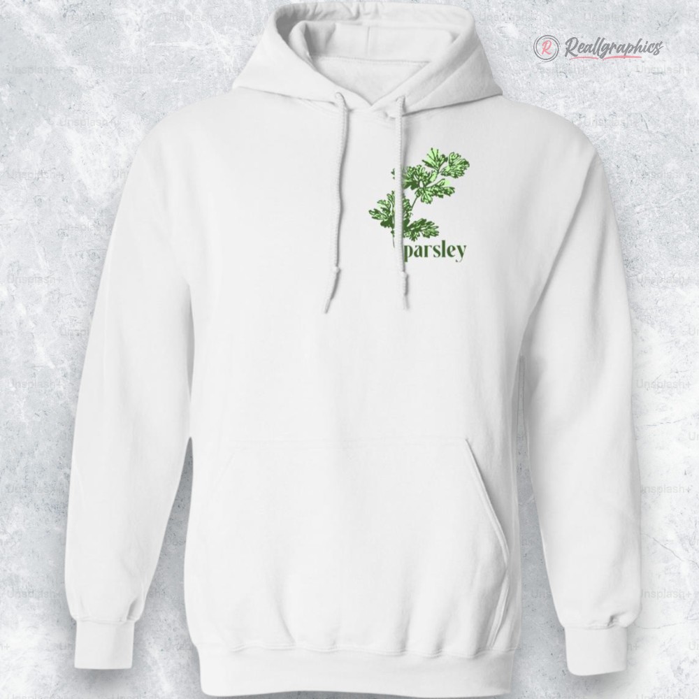 Clothing often speaks quietly about who we are without needing loud statements. This hoodie carries the simple, honest beauty of parsley—a modest herb turned design element with genuine charm. On the left chest, a finely detailed green illustration of parsley leaves rests alongside the small, understated text “parsley,” blending serif and sans-serif fonts for an effortless balance between classic and modern. The minimalism of the design lets the natural motif stand out without overplaying its hand. There’s a subtle confidence in wearing something that nods to earthiness and simplicity. It’s not just about fashion; it’s about a connection to the natural world, a shared appreciation for the small pleasures found in gardening, cooking, or thoughtful casual wear. The fresh, muted green of the graphic against the fabric signals a lifestyle that values quiet moments and authenticity, rather than loud branding or trends. This parsley hoodie feels right at home with those who tend to herbs with care or who naturally gravitate toward designs that reflect their curiosity about plants and food culture. It’s an unpretentious choice that communicates belonging to a thoughtful, grounded community—whether layered at home, worn out with friends, or given as a gift to someone who delights in the simple joy of herb gardening. The parsely hoodie bridges the gap between nature and daily style with restrained elegance.