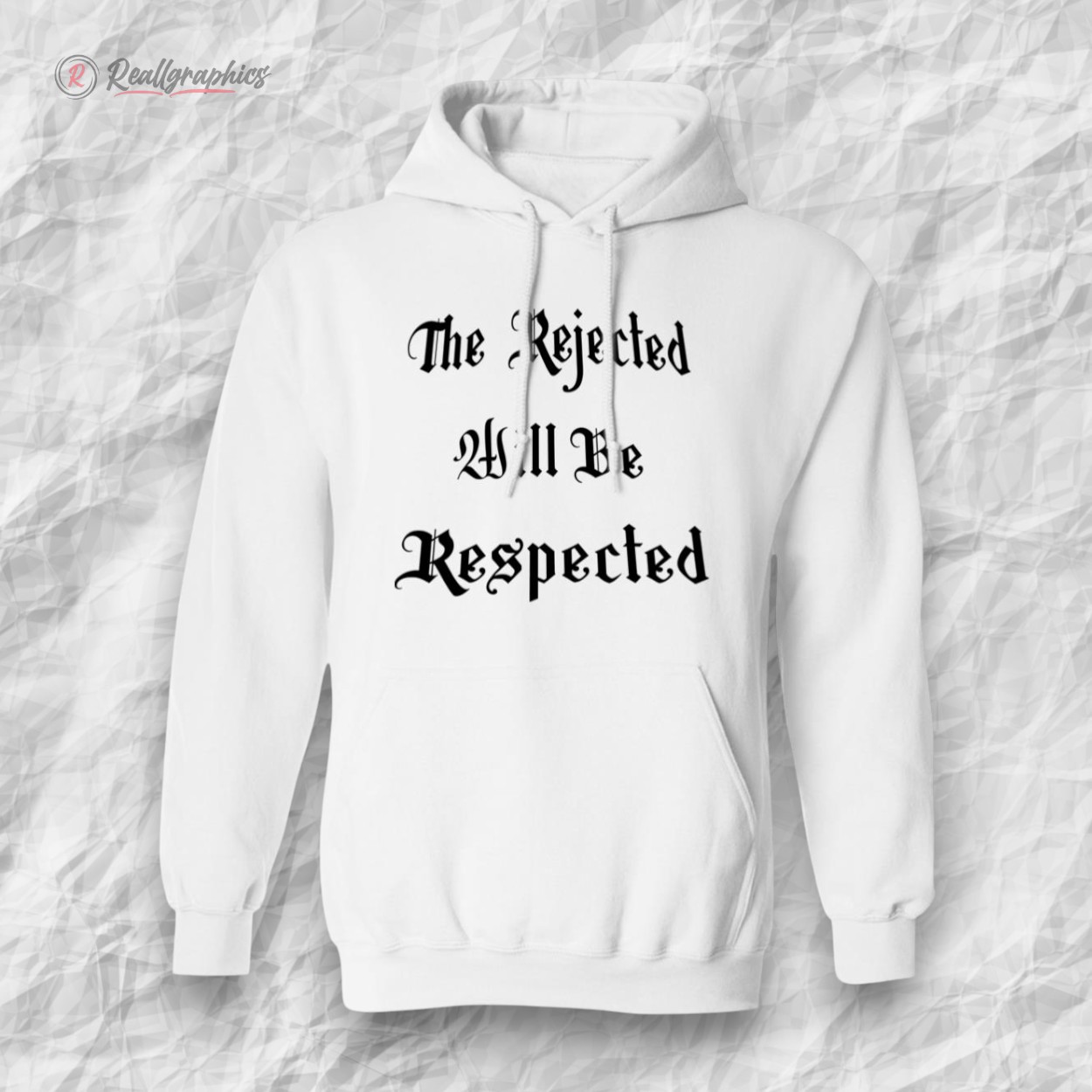 For those who follow Shédeur Sanders, this hoodie resonates on a level beyond just fandom—it’s a nod to resilience and quiet confidence. The phrase The Rejected Will Be Respected carries with it a story, a mindset that anyone determined to prove their worth can relate to. It speaks volumes without shouting. The design itself leans heavily on gothic, blackletter typography that wraps around the chest in stark black against a clean white fabric. The bold, Fraktur style text pays homage to classic streetwear aesthetics, anchoring the message in a strong and assertive visual language. It’s straightforward but powerful, making the words stand out as a statement piece. Crafted with care, the hoodie balances comfort and durability. The fabric feels substantial enough for cooler days without losing softness, while the print holds steady through wear. The clean lines and deliberate spacing around the typography show a thoughtful design layout that never feels overcrowded. Beyond everyday wear, this hoodie fits right in at casual events or fan gatherings where personal statements matter as much as the company. Whether given to a friend who champions Sanders, or kept as part of a collection of meaningful memorabilia, it’s an emblem of pride in overcoming doubt and embracing respect on one’s own terms.