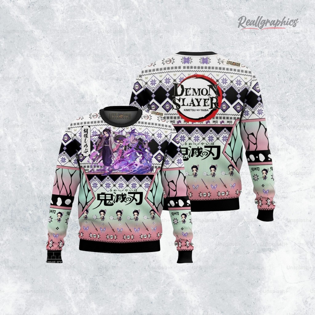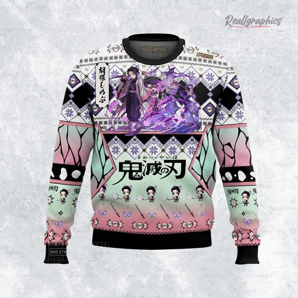 Spread holiday cheer with this unique anime-inspired sweater! Featuring a certain Insect Hashira, it's the perfect cozy and quirky Xmas gift for any Demon Slayer fan. Get yours today!