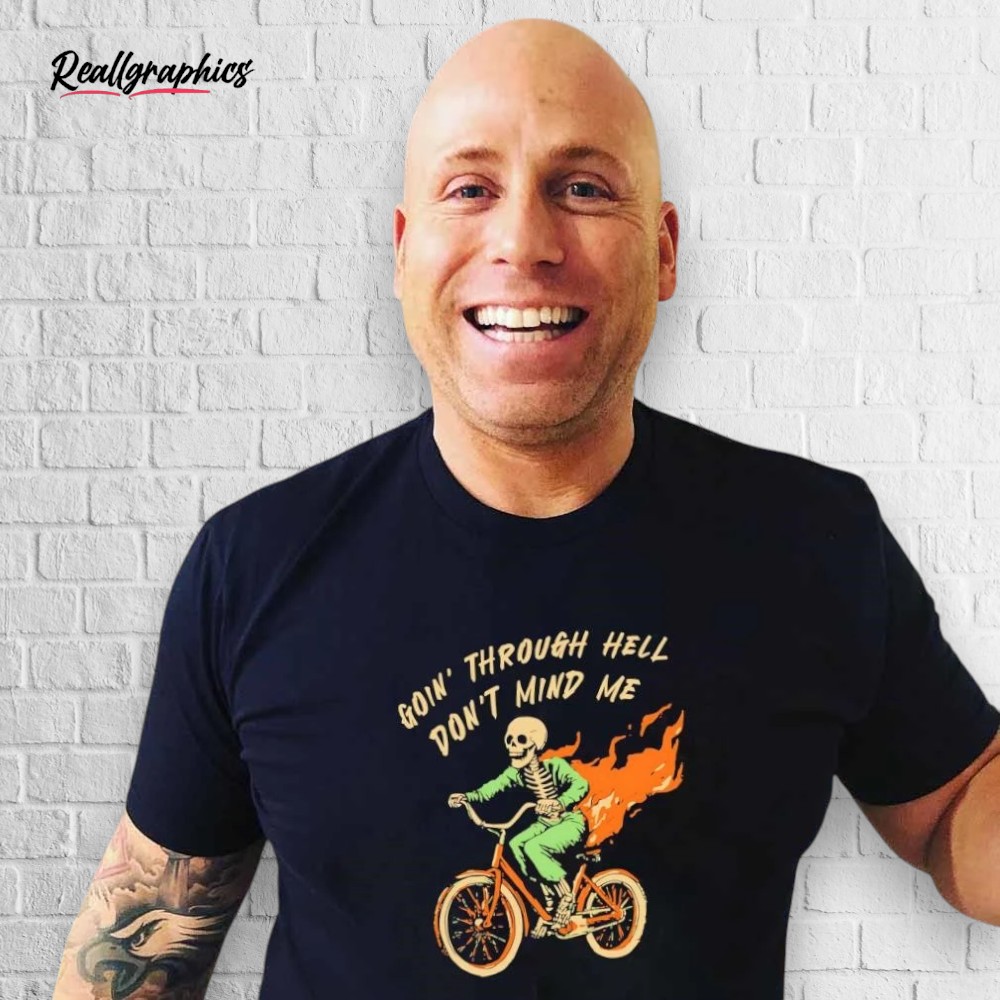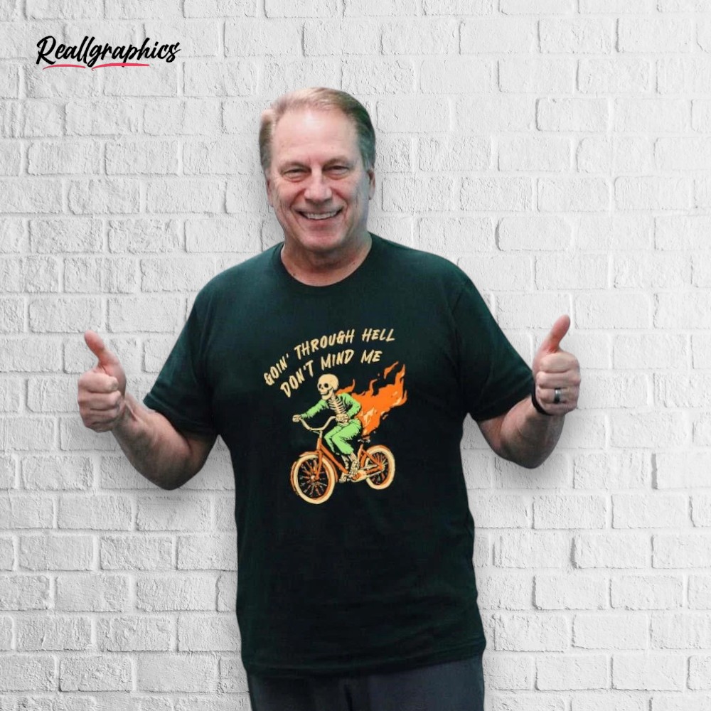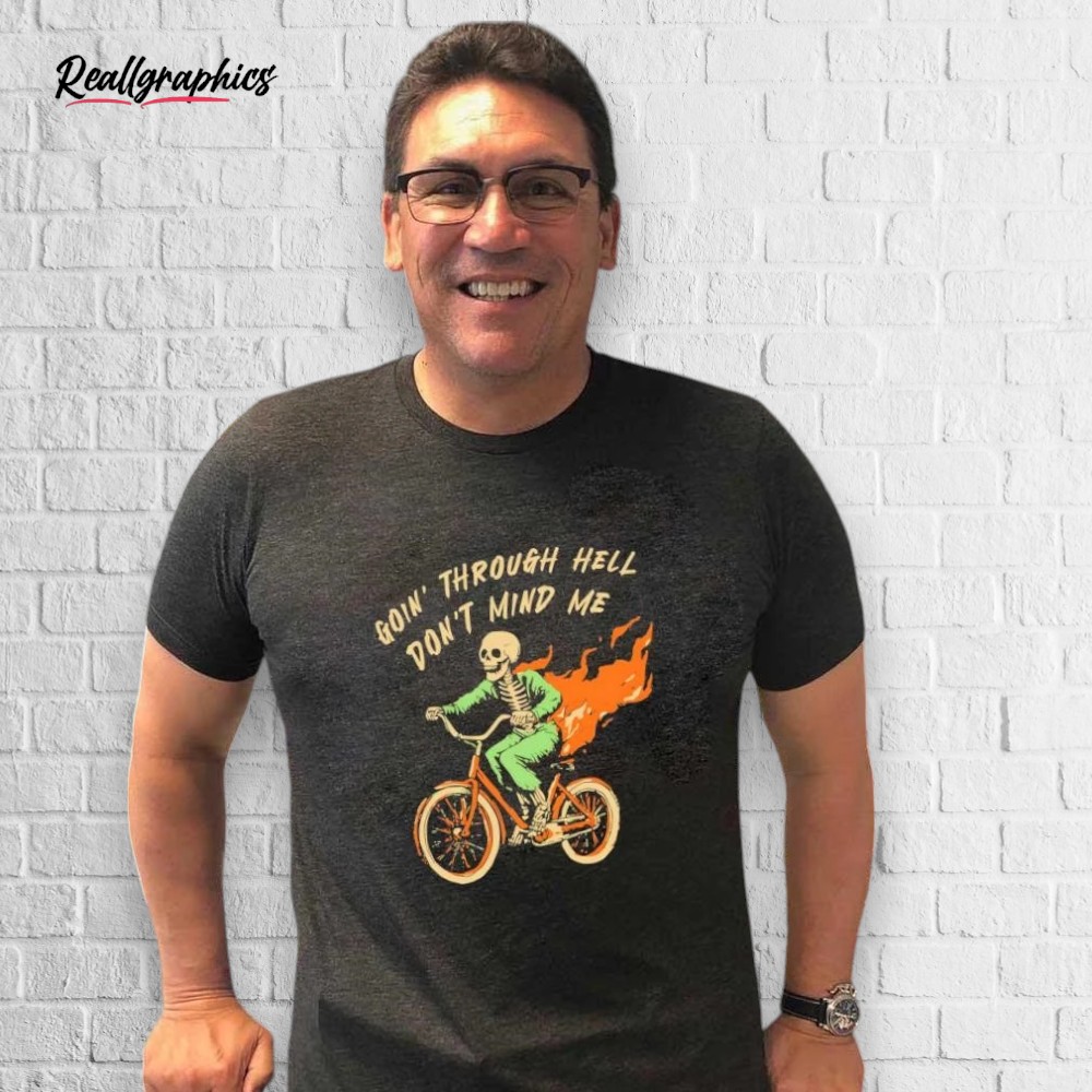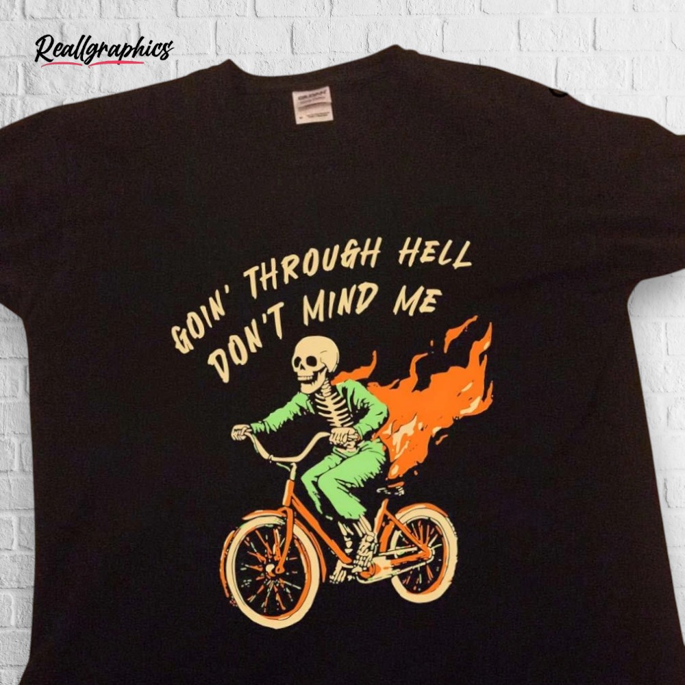Skeleton Riding Bike Going Through Hell Don’t Mind Me Shirt