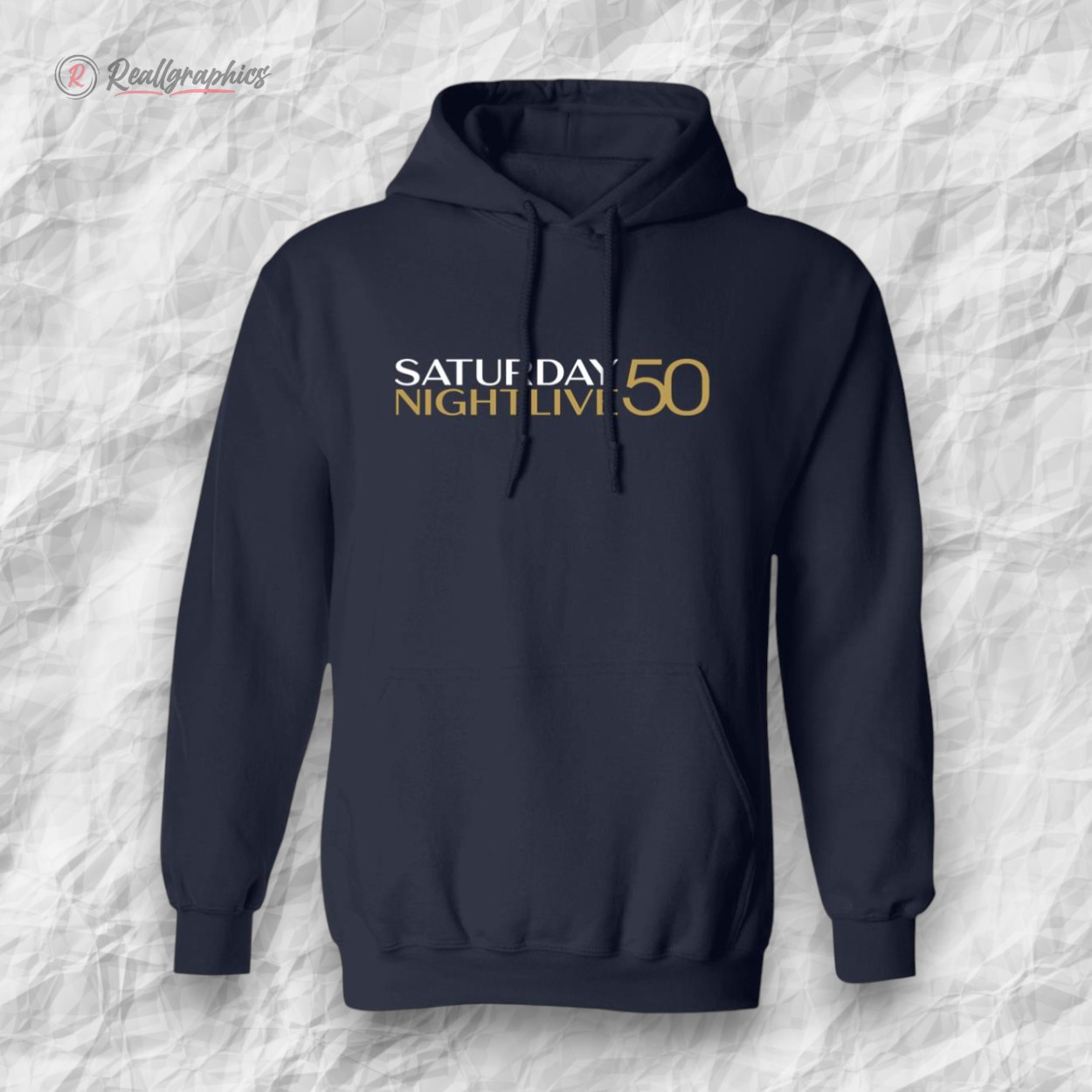 A bold block of white and gold letters catches the eye, the number 50 standing large and proud across the chest. The typography is modern, clean, and unapologetically sporty, like a badge worn during a celebration that’s been decades in the making. This hoodie wears its pride openly, with a sleek contrast of colors that shout festivity without ever feeling over the top. The design isn’t cluttered—just a confident statement in bold sans-serif type, its palette chosen to honor a milestone. It’s the kind of piece that fits effortlessly into weekend plans, whether paired with a favorite pair of jeans or layered under a jacket during brisk evening walks. Wearing it signals more than just fandom; it’s an embrace of shared moments, iconic sketches, and the laughter that spanned generations. Ideal for adults who hold Saturday Night Live close to their heart, this shirt brings a subtle sense of belonging. It’s as much about personal identity as it is about paying tribute to a cultural staple. For those who collect memorabilia or simply appreciate design that balances sporty with celebratory, it offers a quiet yet undeniable charm. The SNL 50th anniversary shirt stands as a reminder of time — both the past half-century and the moments yet to come.