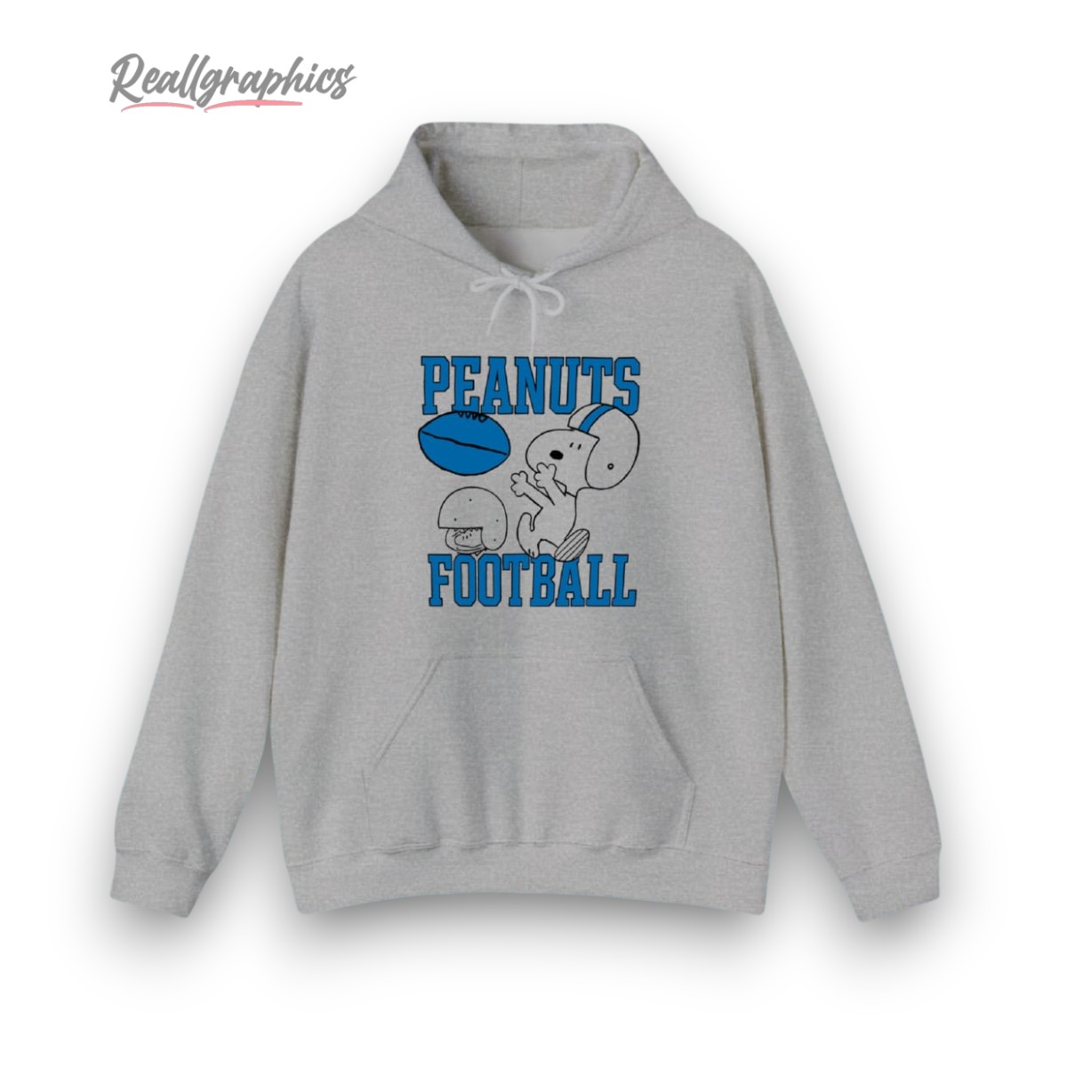 Kick off your style with this shirt featuring an adorable football-themed Snoopy design. Perfect for fans of the iconic Peanuts gang, it showcases Snoopy in a playful, sporty vibe that's sure to bring a smile. Bold blue accents highlight the classic Peanuts lettering, making it a standout piece for casual outings or game day fun. Add a touch of nostalgia and cheer to your wardrobe with this charming print.