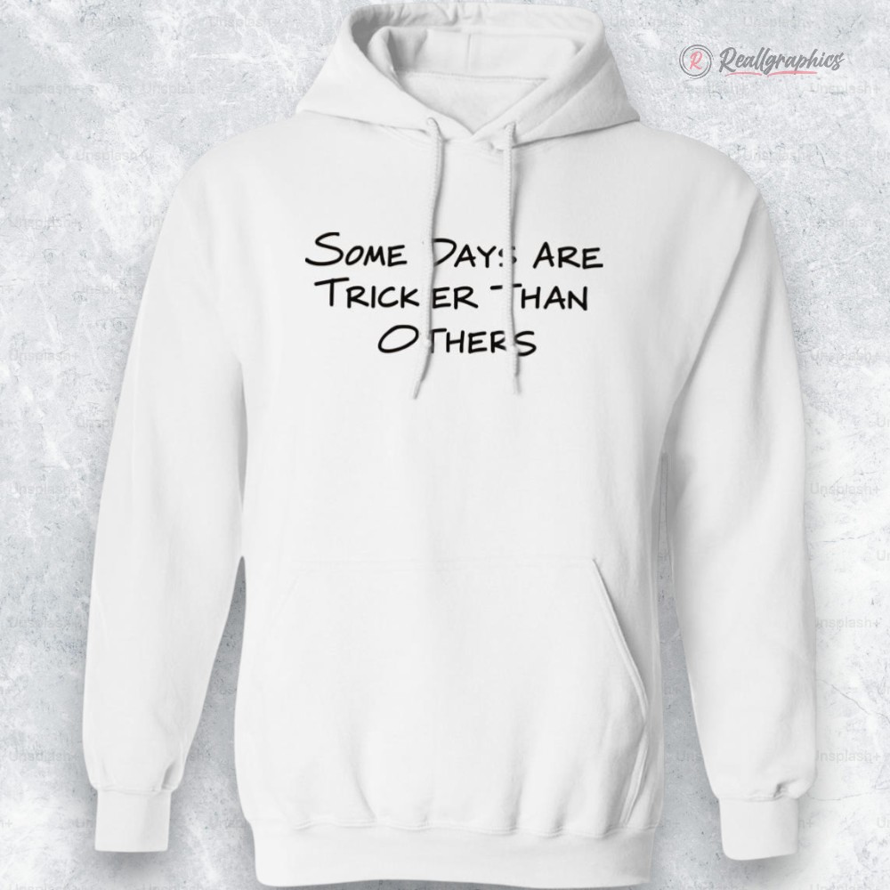 There are moments when words capture exactly how you feel before you even fully know it yourself. That feeling comes alive in bold, casual strokes sprawled across the chest, as if someone just grabbed a marker and let the sentiment flow freely. The handwritten-style typography brings an unpretentious charm—playful, real, and perfectly imperfect. It’s the kind of design that says, “Yeah, some days don’t play fair,” without needing any explanation. This hoodie is more than a piece of clothing; it’s a nod to those who navigate life with a smirk and a little patience. It resonates with anyone who recognizes that not every day is smooth sailing, but you can still carry on with a wink at the chaos. Whether worn during a relaxed afternoon out or as a lighthearted emblem among friends who appreciate a dash of humor in their wardrobe, the design fits effortlessly into a casual, laid-back lifestyle. People who find solace in self-expression through subtle but meaningful statements will see themselves here. It’s thoughtful enough to nudge a smile and honest enough not to pretend life is a constant loop of sunshine. The phrase “Some Days Are Trickier Than Others” echoes quietly in that handwritten font, making it clear this is for those who embrace their ups and downs without losing their sense of humor.