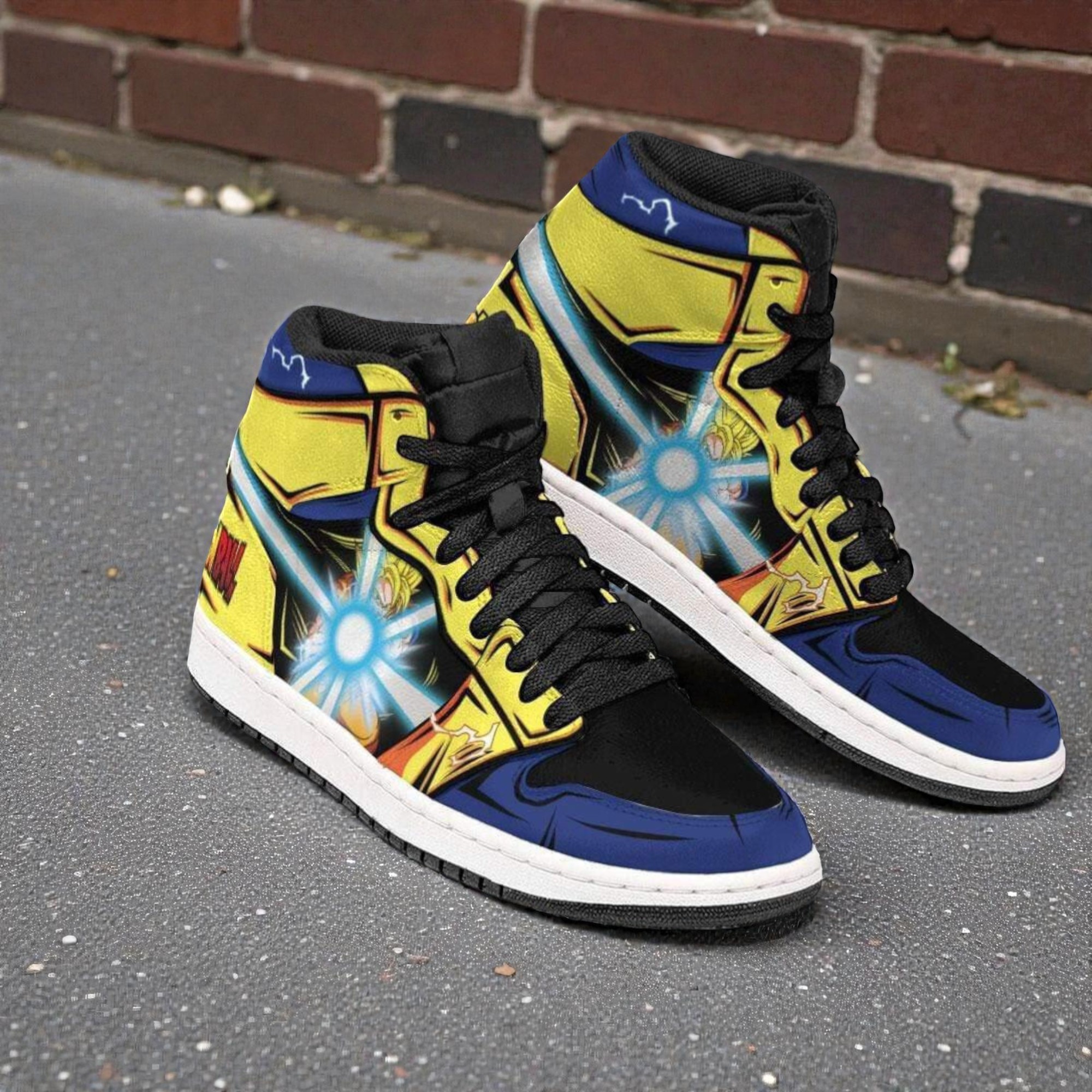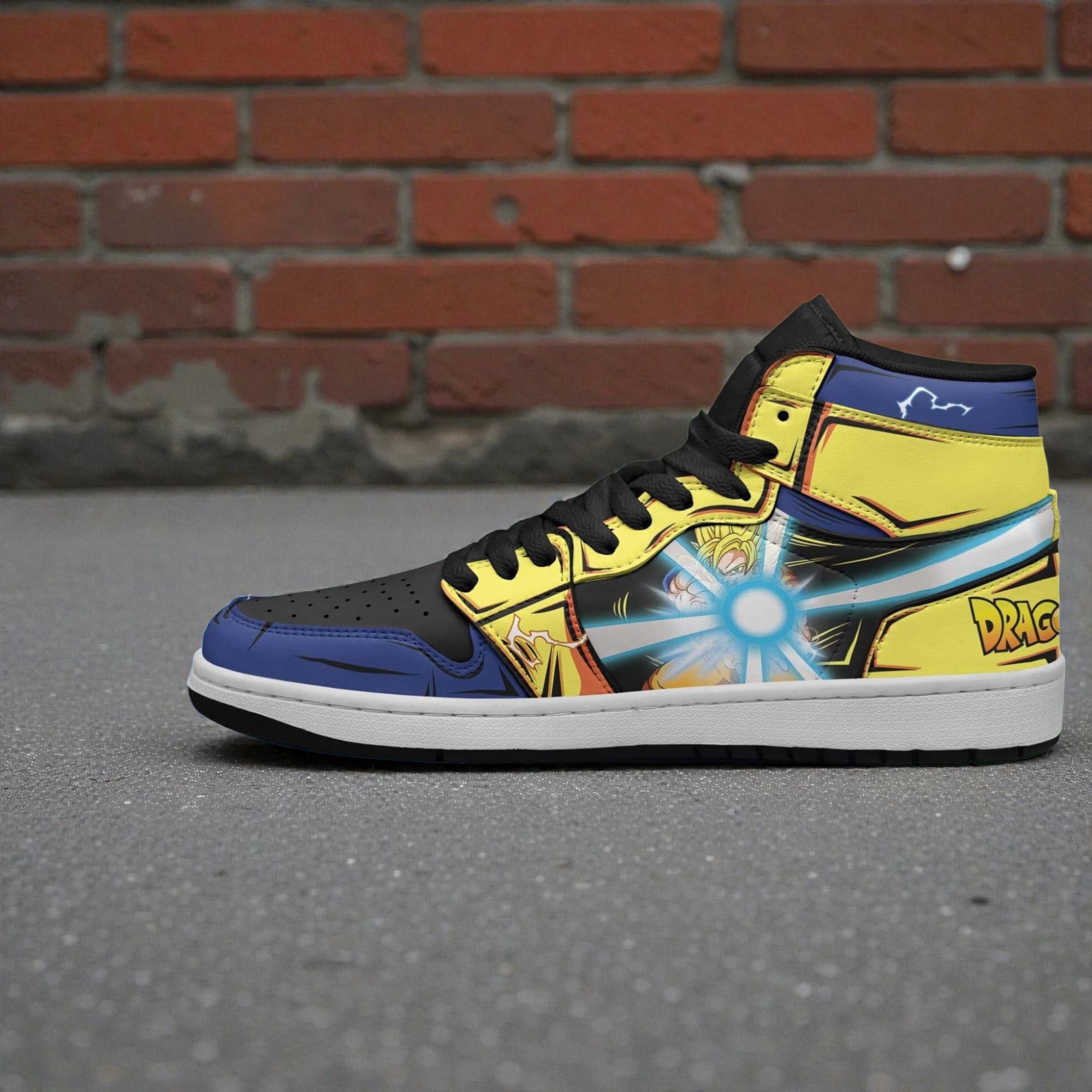 The moment your eyes catch the burst of bright yellow at the toe box, you know these shoes mean business. Those bold blue panels framing the sides don’t just add color—they charge the vibe with that unmistakable Dragon Ball energy. The custom artwork feels like it’s erupted straight from the anime itself, with Son Goku poised mid-Kamehameha, his energy blast crackling along the sneakers’ outer edges. It’s not just footwear; it’s a tribute to action and power, made for those who live for the rush of epic battles and vibrant storytelling. Look closer and you’ll see the stylized comic font etched into the sole, dynamic and unapologetically bold. The graphic’s energy practically hums beneath your feet, adding a heartbeat to casual wear that usually flies under the radar. These aren’t shoes you blend into the background with. They are a deliberate statement, bridging sneaker culture and fandom with a flair that’s hard to ignore. Pair them with relaxed jeans or cargo pants, and a graphic tee—something that lets the shoes do the heavy lifting when it comes to making an impression. Perfect for conventions, fan meet-ups, or just those days when you want your love for anime to speak for itself without saying a word. This is for the Dragon Ball enthusiasts who want their passion worn loud and proud, the collectors who appreciate custom artwork that stands out, and anyone who’s tired of shoes that play it safe. The Son Goku Kamehameha Shoes don’t whisper—they roar.