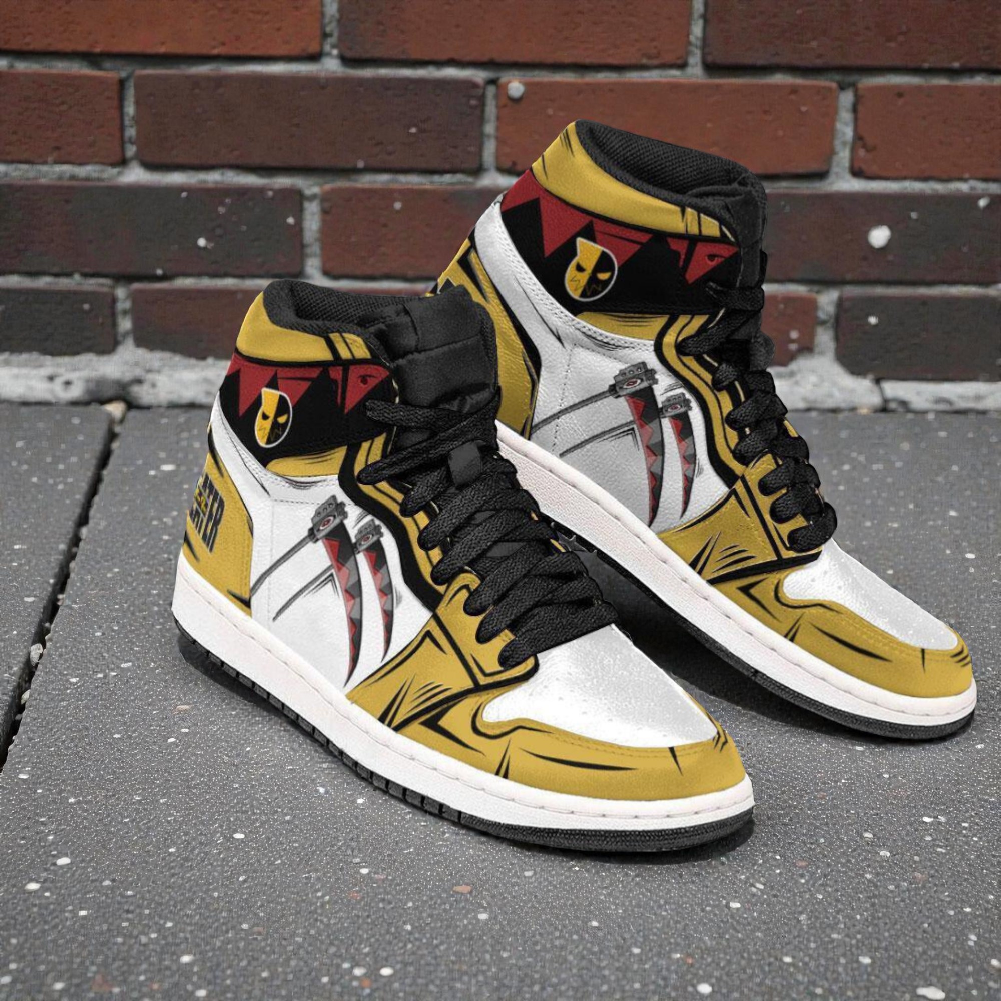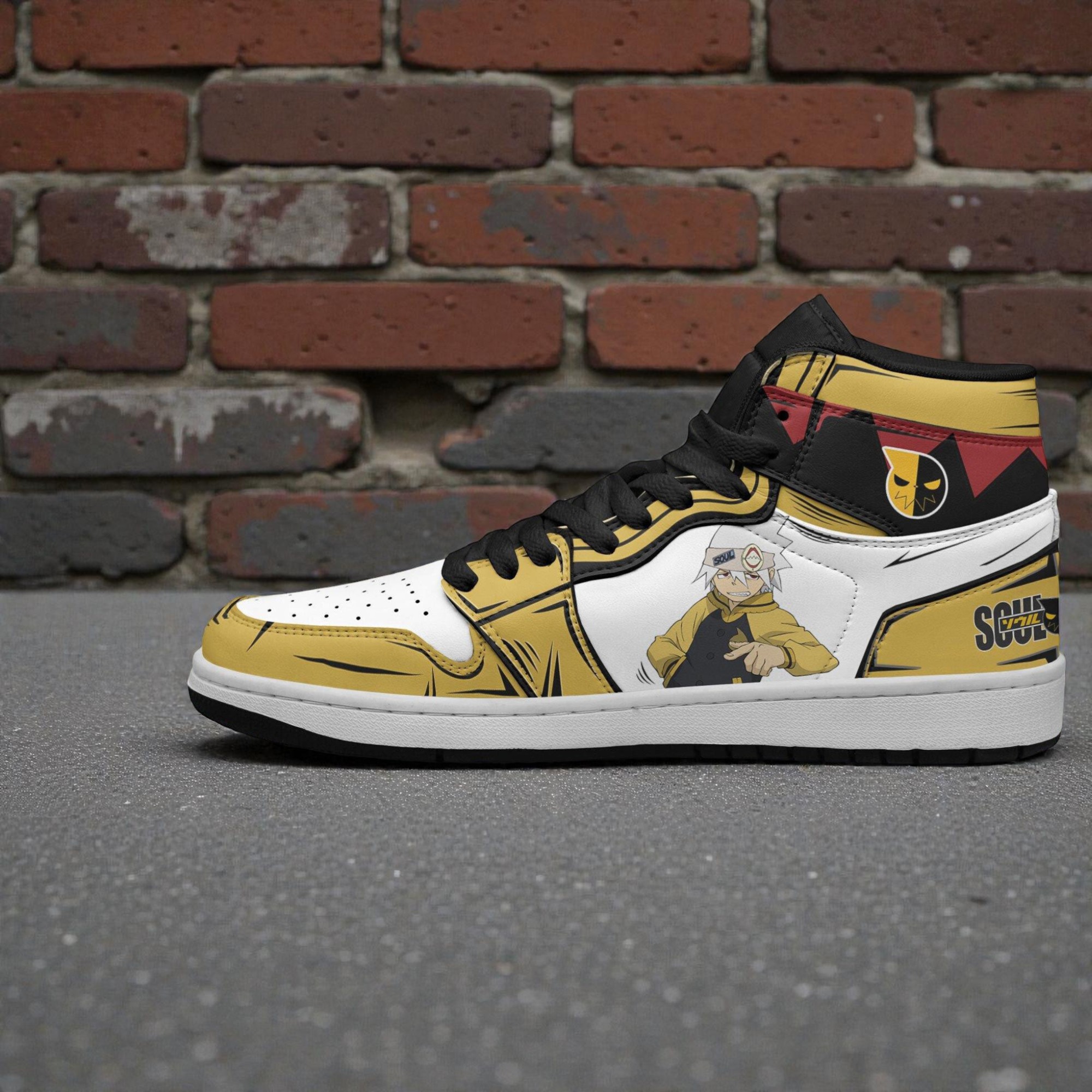 The first thing that catches your eye is the bold, almost electric contrast between the yellow and black panels, a clear nod to the dynamic energy of Soul Evans himself. This shoe isn’t just about looks—it’s a wearable tribute to a character who embodies resilience and style. The graphic illustration, sharp and comic-inspired, wraps around the sneaker with a confident edge, capturing Soul’s rebellious spirit in every line and curve. Each panel serves a purpose, breaking up the silhouette with bursts of white and black that feel both modern and rooted in street culture. The stylized logo text adds an extra layer of attitude, its blocky design echoing graffiti aesthetics without overwhelming the overall vibe. There’s craftsmanship here that goes beyond decoration; the shoes feel solid, designed to take you from everyday routines to fan conventions with equal flair. Collectors will appreciate how these anime sneakers stand out—more than just footwear, they’re statement pieces that celebrate fandom in a tangible way. For those who live and breathe anime or want to channel a bit of that energy into their daily look, this shoe fits naturally into a wardrobe already brimming with personality. It’s also an excellent gift for anyone who’s serious about their sneakers or adores Soul Evans’ unique swagger. Whether for casual wear or for turning heads at meetups, the design feels alive, unapologetic, and ready to hit the streets.
