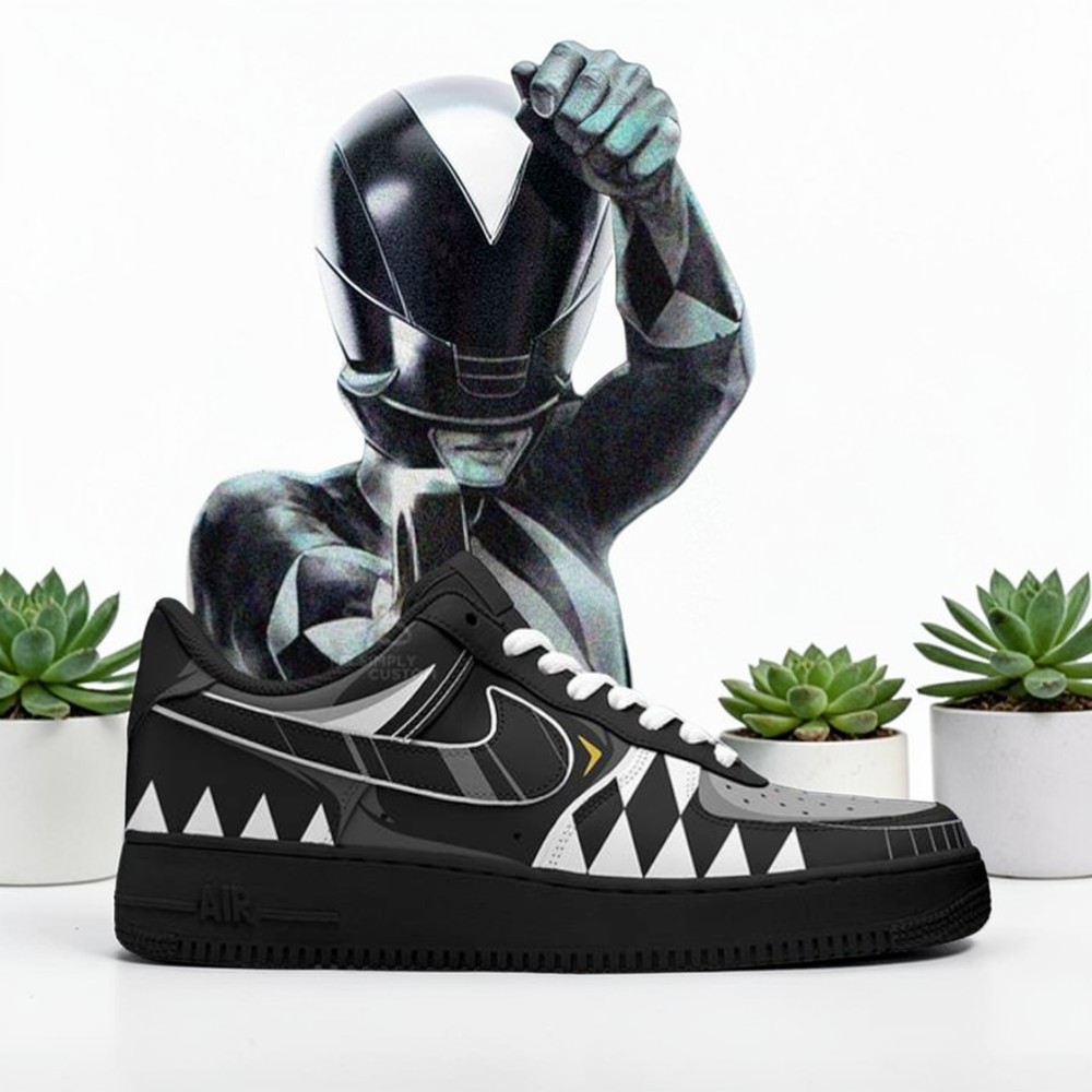 There’s something quietly powerful about slipping on a pair of sneakers that carry more than just style—they carry meaning. These Special Edition Mighty Morphin Power Black Rangers Air Force 1 sneaker shoes do just that. They capture a fierce, urban energy that resonates beyond the surface. The color scheme reads like a story in black and white, grounded by a solid black base with sharp white geometric triangles that create a striking pattern. It’s a design that isn’t loud, but it definitely commands attention. Look closer, and you’ll notice the subtle gray gradient panels—soft transitions that add depth without screaming for notice. And for those who know the details, the yellow chevron accent gives just the right pop of color; a nod to the iconic Black Ranger’s signature style, carefully placed to elevate the overall monochrome vibe. The white laces and swoosh accent tie it all together seamlessly, balancing the bold edges with clean finishes. These sneakers aren’t just for casual wear; they fit naturally into fan gatherings, street style ensembles, or even a well-thought-out cosplay that keeps comfort front and center. A Power Rangers fan who appreciates limited drops, or a collector who values unique designs with a story, will find this pair irresistible. It’s a subtle shout-out to a classic era, perfect as a thoughtful gift or a private celebration of a beloved fandom. If you’re drawn to the blend of bold visuals with a purpose, these Mighty Morphin Power Rangers sneakers belong in your rotation.