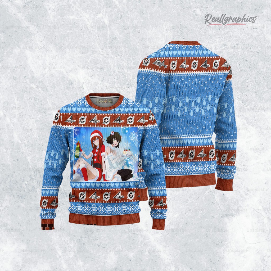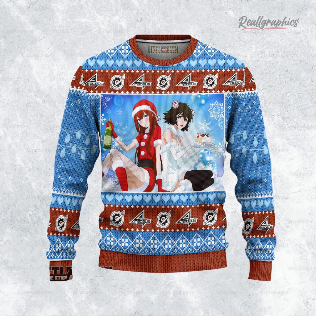 El Psy Kongroo! 🧪 Embrace the paradox of festive cheer with this unique custom sweatshirt! Featuring Kurisu and Mayuri in a delightful, somewhat questionable, holiday design. Perfect for showing your love of time travel and awkward Christmas parties. Get yours before it vanishes from the timeline!