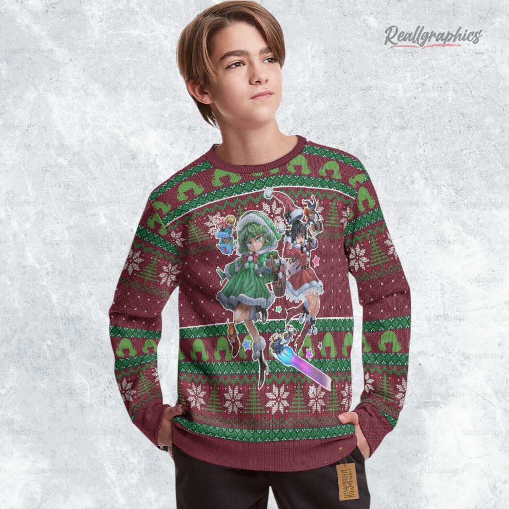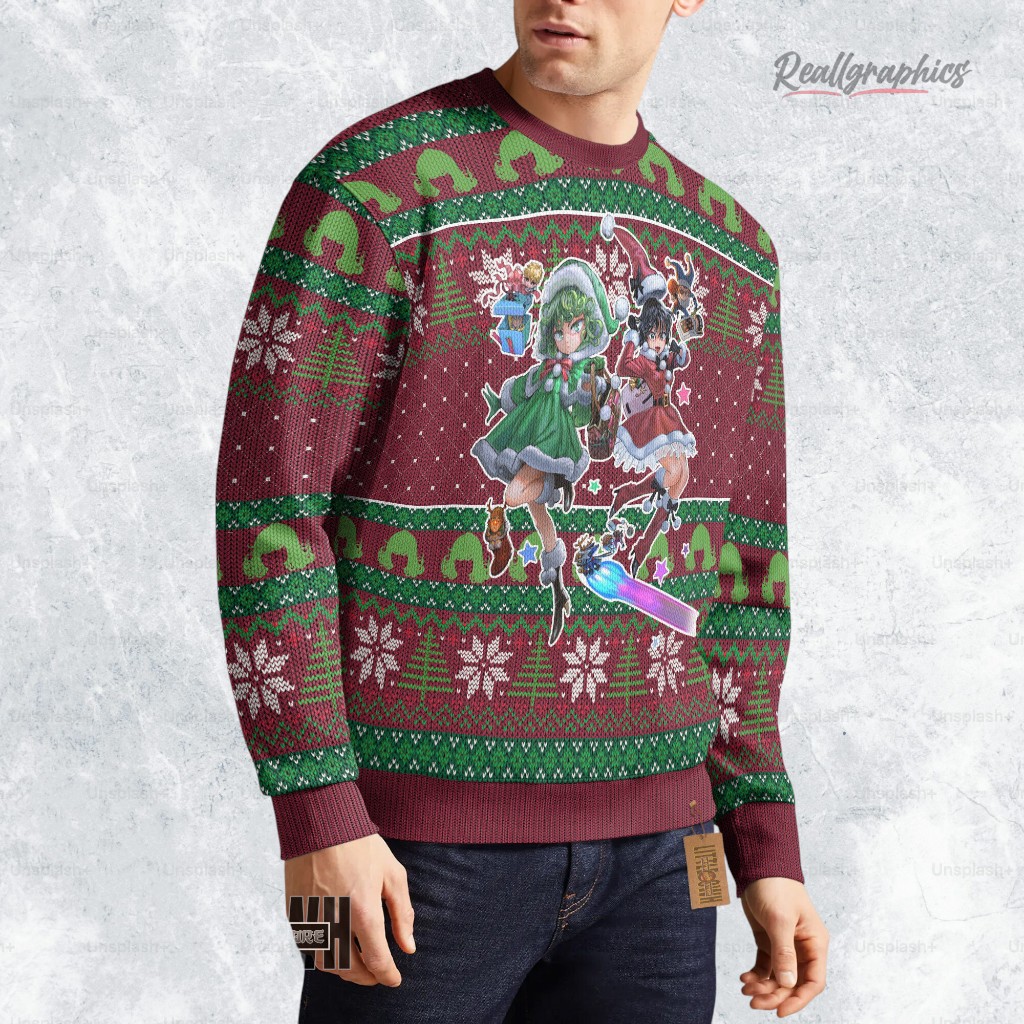 Stay cozy and show off your love for One Punch Man this holiday season! Rock this unique sweatshirt featuring everyone's favorite psychic sisters. It's the perfect quirky gift for any OPM fan or a fun way to spice up your own winter wardrobe. Get yours today! Tatsumaki And Fubuki Ugly Sweater Custom One Punch Man Sweatshirt